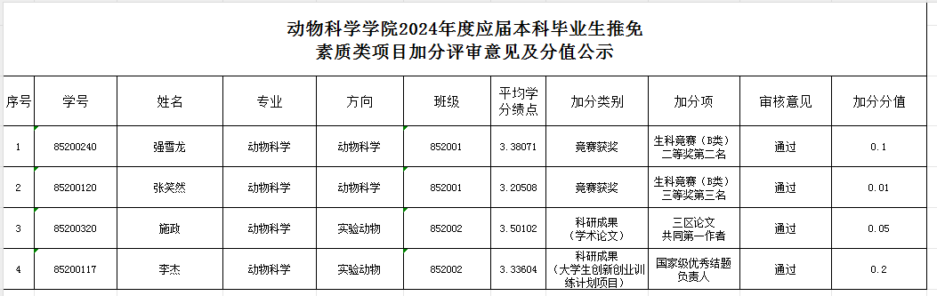 根据《MILE米乐官方网站推荐优秀应届本科毕业生免试攻读硕士学位研究生工作管理办法》和《关于开展2024年推荐优秀应届本科毕业生免试攻读研究生素质类项目加分及综合排名工作的通知》要求,学院组织符合要求的学生自愿提交本人相关素质类项目成果材料,同时学院成立专家审核小组,按照年度推免工作实施细则及加分标准,对申请推免资格学生的素质项目进行审核鉴定,并组织相关学生在学院范围内进行公开答辩。现将通过答辩学生名单进行公示。