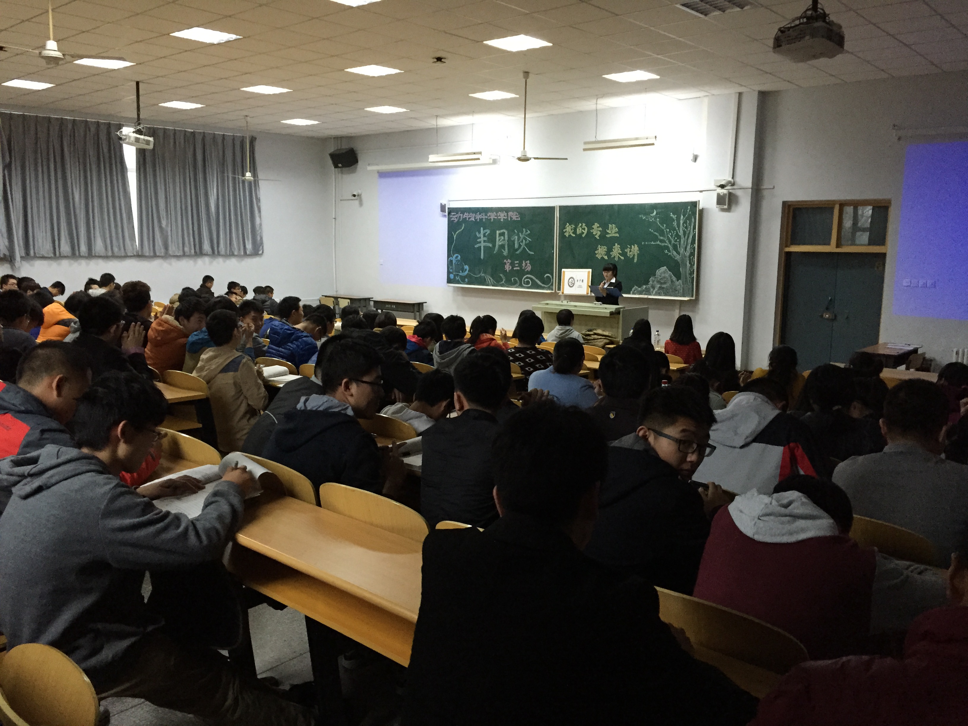 2015年4月2日,周四下午四点,MILE米乐官方网站2014级全体本科生齐聚科学讲堂200教室,以热烈的掌声欢迎本期嘉宾2011生物技术(动物)专业的王一名学姐和2012级生物技术(动物)专业的吴志竞学姐参加本次分享会。