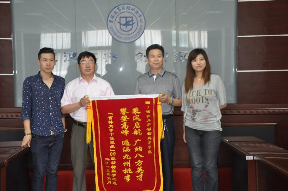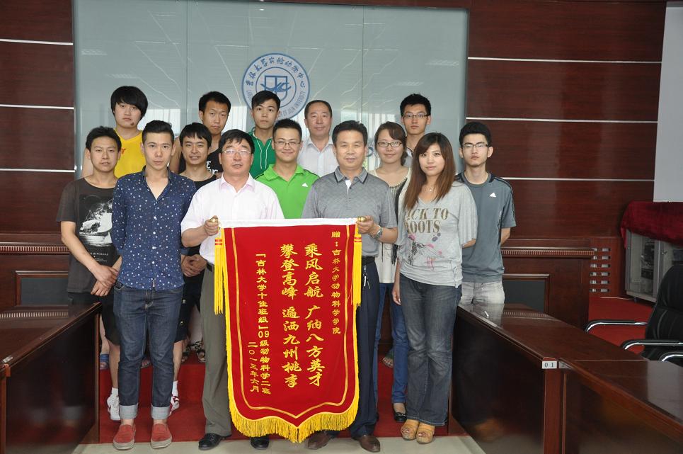 6月28日下午2:30,MILE米乐官方网站2009级动物科学2班毕业生在离校之际向学院赠送了锦旗。学院院长张嘉保教授、党委书记赵光军老师、党委副书记曹伟光老师、毕业班辅导员肖建荣及部分毕业生代表参加了此次赠予仪式。