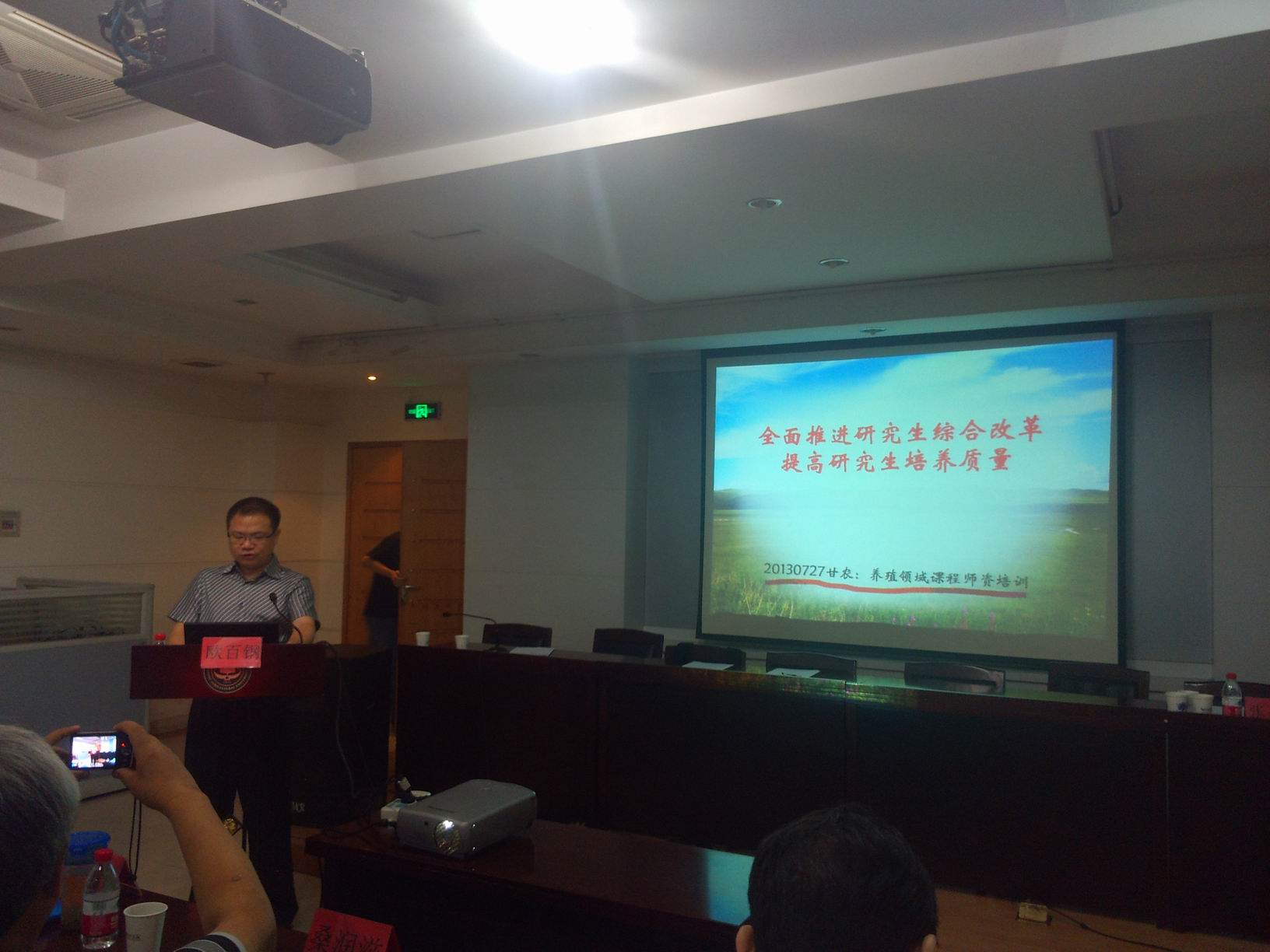 2013年7月26-30日,农业推广专业学位《动物繁殖理论与生物技术》课程师资培训班在甘肃农业大学召开。本次培训班由全国农业推广硕士专业学位研究生教育养殖领域分委会主办,MILE米乐官方网站与甘肃农业大学共同承办。国务院学位办欧百钢处长、甘肃农业大学郁继华副校长,养殖领域分委会主任李发弟教授参会,来自全国农业院校从事动物繁殖学教学的20名教师和甘肃农业大学的25名专业硕士参加了培训。《动物繁殖理论与生物技术》主编、MILE米乐官方网站张嘉保教授及动物繁殖领域专家并进行了相关培训工作。