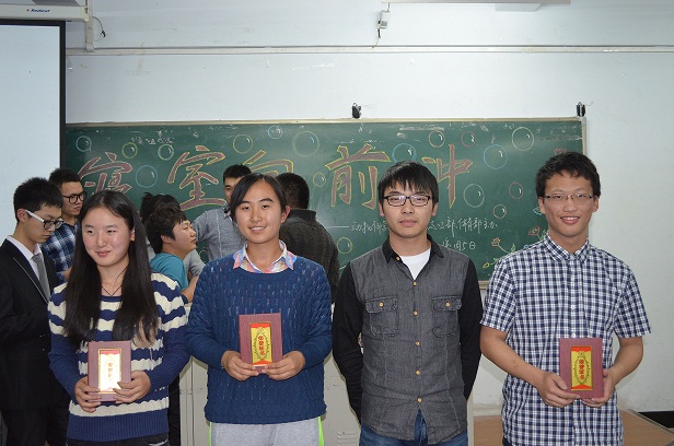 本次活动由趣味问答,豆豆快跑,知识抢答三个环节组成。参赛的25个寝室都积极地参与到了活动中来。在趣味问答环节中,所问知识涉猎广泛,同学们也群策群力,都有较好表现。在接下来豆豆快跑环节中,作为团队的一份子,每个同学都倾情投入,氛紧张活跃,趣味盎然。知识抢答环节是本次活动的高潮部分,通过向嘉宾打电话回答问题的方式进行游戏,每个同学不仅要了解各类趣味问答的答案,还要以最快速度打通电话,可谓斗智斗勇,笑料百出。最后累计得分角逐出了前六名,获奖寝室代表与主席,副主席拍照留念,此次活动圆满结束。
