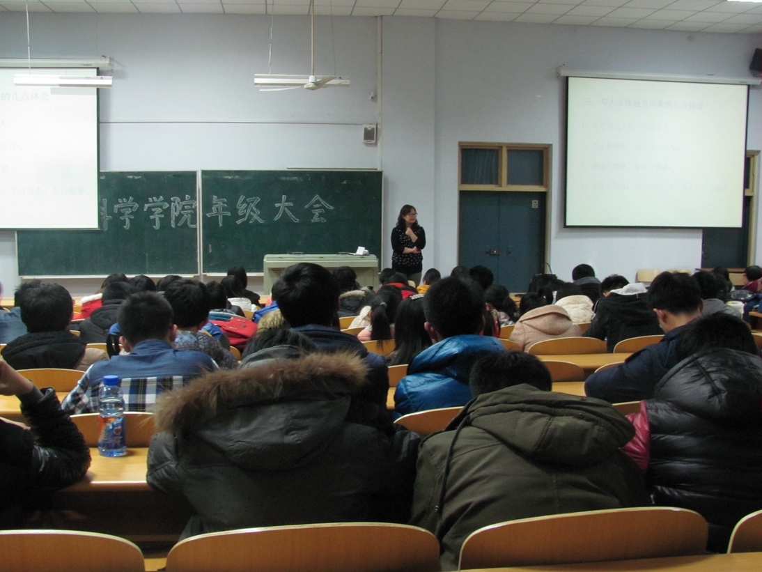 寒假转眼间结束,新学期也已正式开始,为回顾并分析第一学期的成绩与不足,使同学们尽快进入学校生活状态,端正学习态度,合理安排个人时间,MILE米乐官方网站于3月11日下午3:30在科学讲堂100教室召开2013级年级大会。会议由辅导员肖建荣主持。