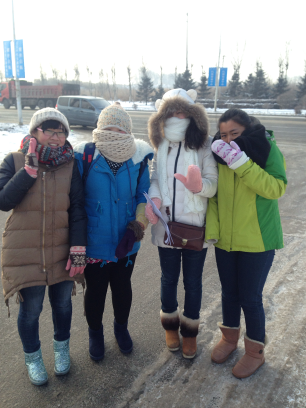 12月13日早8点,四组志愿者冒着零下20多度的严寒奔赴目的地,许多同学手脚被冻得发麻,不断地跺脚、搓手取暖。