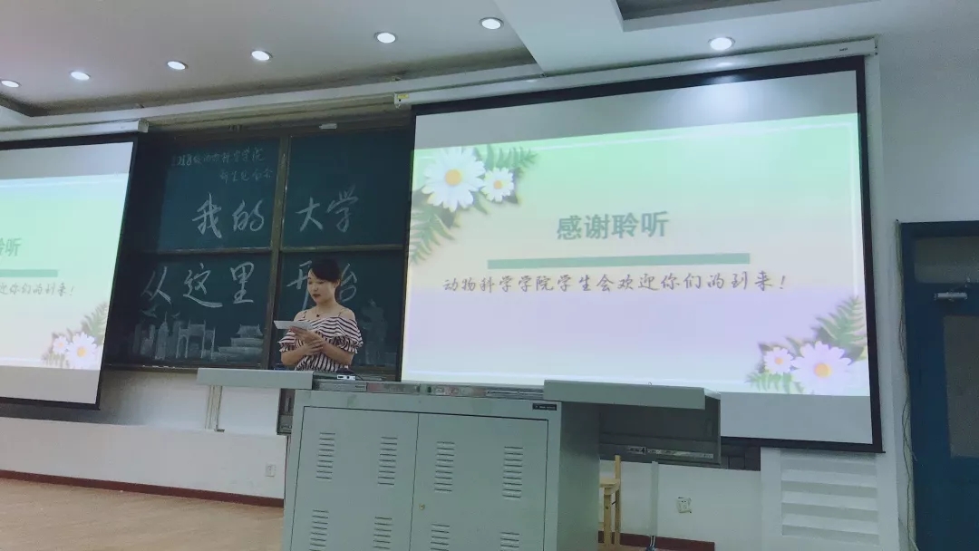 会议开始时,由主持人对学生会的职能及任务做出了一个简要而完整地概括。然后由主席及各部门部长对主席团及各部门做了具体而详细的介绍。每个人都配合着自己部门精心制作的PPT,用自己的风格给大一新生们做了精彩的讲解。亲切的主席李金泽,严肃的副秘书长吕焱,端庄的文艺民族部部长李璐,幽默的体育部部长白元滨,可爱的组织宣传部部长段雨含,温柔的生活学习心理部部长肖雯予以及实在的外联志工部部长余霆杰。不仅仅是上台发言的部长们,各部门的副部长们也为本次宣讲会做了许多准备工作。大一新生们也从这些风格不同的介绍中,对学生会有了自己的了解。而在接下来的提问环节中,大一新生们也积极地和学长学姐们互动,提出了许多自己想要了解的问题。最后主持人说了结束词,本次新生宣讲会在一片欢乐的气氛中圆满结束。