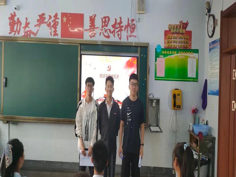团队正式开启实践活动第一站,赵乾宇、刘洪儒、张胜等三名队员走进辽宁省抚顺市清原满族自治县第二初级中学,面向初一学生开展抗日民族英雄杨靖宇及杨靖宇精神的宣讲活动。