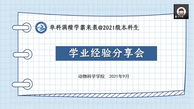 为帮助2021级本科新生提前了解大学课程的主要内容及学习方法,掌握相关课程的学习方法和技巧,搭建新老生之间的学业交流平台,MILE米乐官方网站于2021年9月2日晚19:00依托腾讯会议平台举办学业经验分享会。会议邀请2019级动物科学专业的张师维、张一凡、郭状杰、王文婧等四名同学担任主讲人,会议由2021级辅导员王可佳主持。