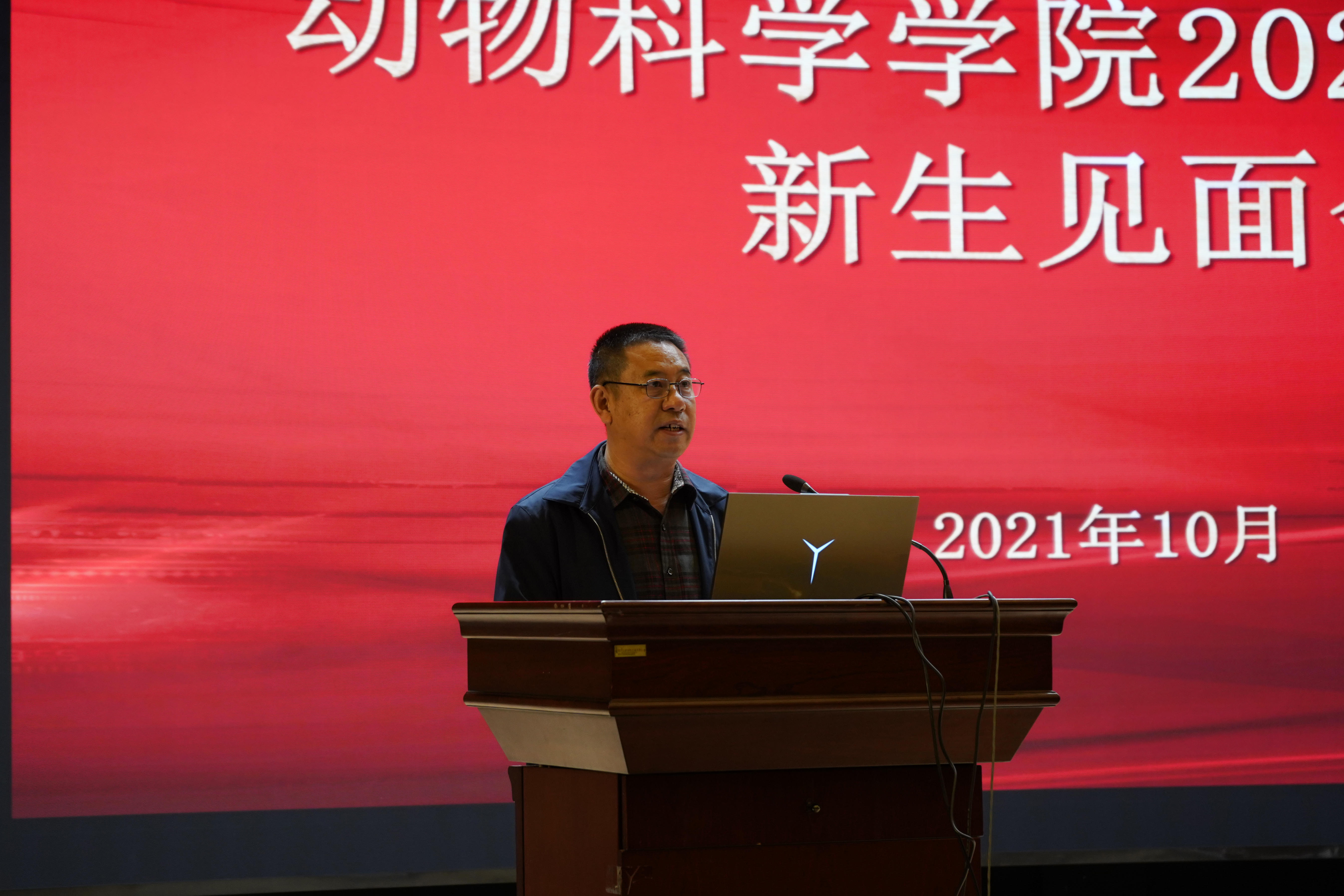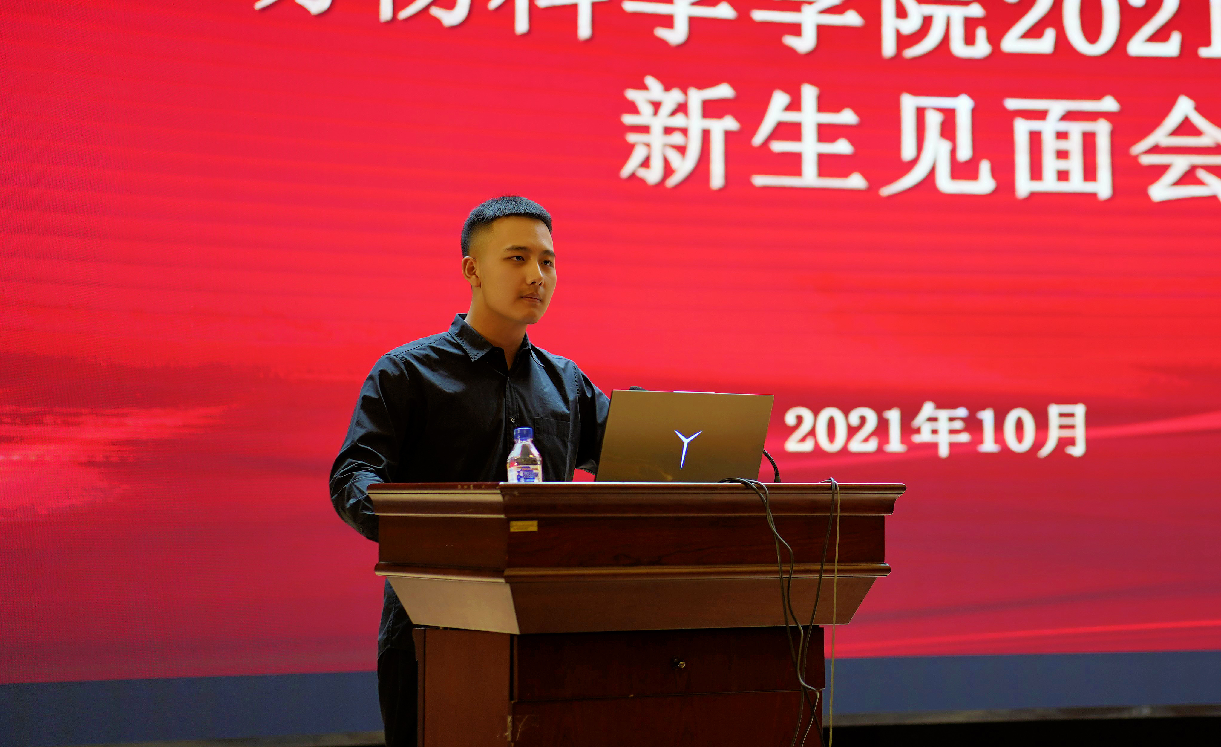 最后,新生代表2021级三班李尚泽发言。他分享了自己入学以来的感受和对未来大学生活的憧憬。同时,他代表新生作出承诺,将努力把自己未来四年在动物科学专业的所学所获与国家需要、时代需求紧密结合起来,做一名眼中有光,心中有党的当代青年。