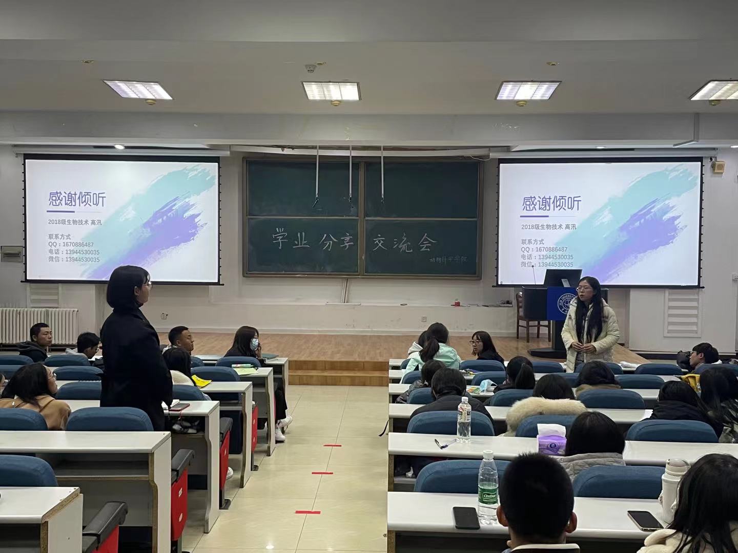 2018级动物科学专业(实验动物)的王文韬以幽默风趣的语言与同学们进行互动。他主要围绕两个方面展开学业经验分享:一方面,要重视开阔个人视野,主动参加学术讲座,学好专业课程和知识;另一方面,要注重提高身体素质,努力丰富课余生活,积极担任学生干部。”如果你不知道想做什么的话,就去做正确的事吧。努力学习,做一个有能力的人;丰富自己,做一个有趣的人”,王文韬以此来勉励学弟学妹。