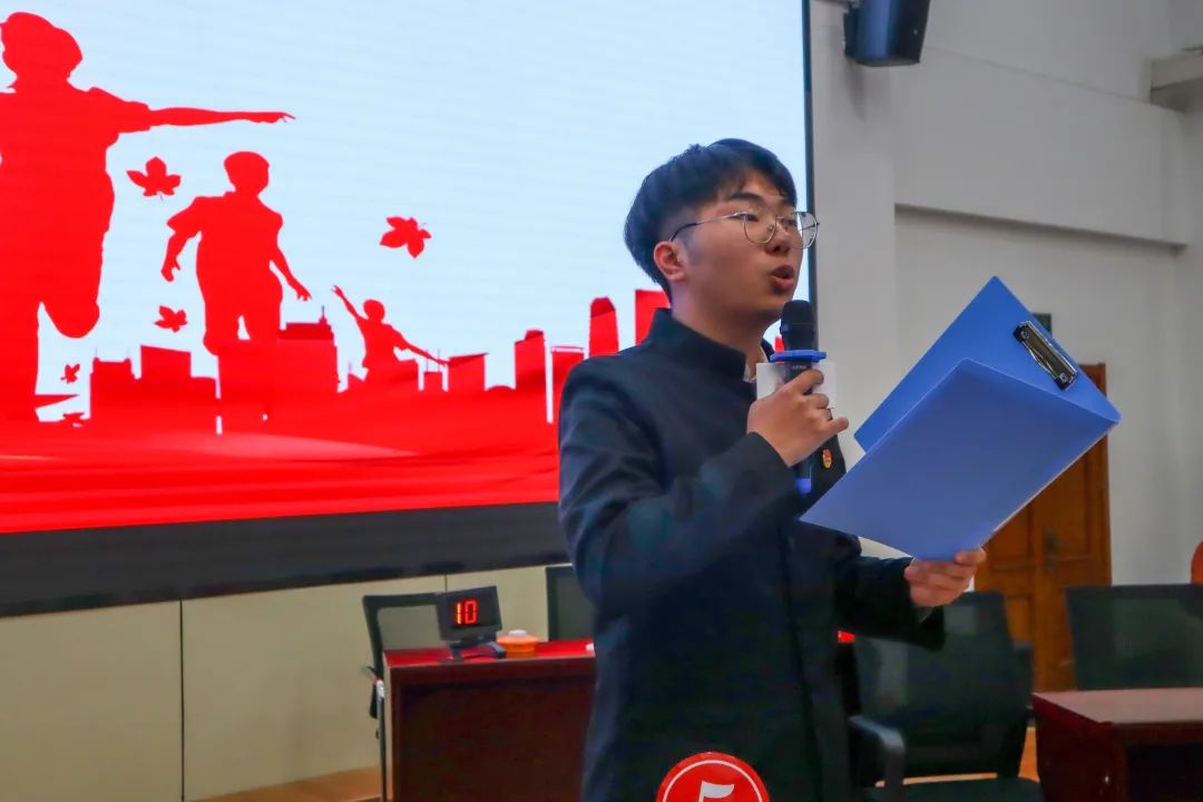 2021级动物科学专业一班团支部的李瑞杰同学《生在盛世,必不负盛世》发表演讲,激励同学们要用青春和热血点燃理想之灯。