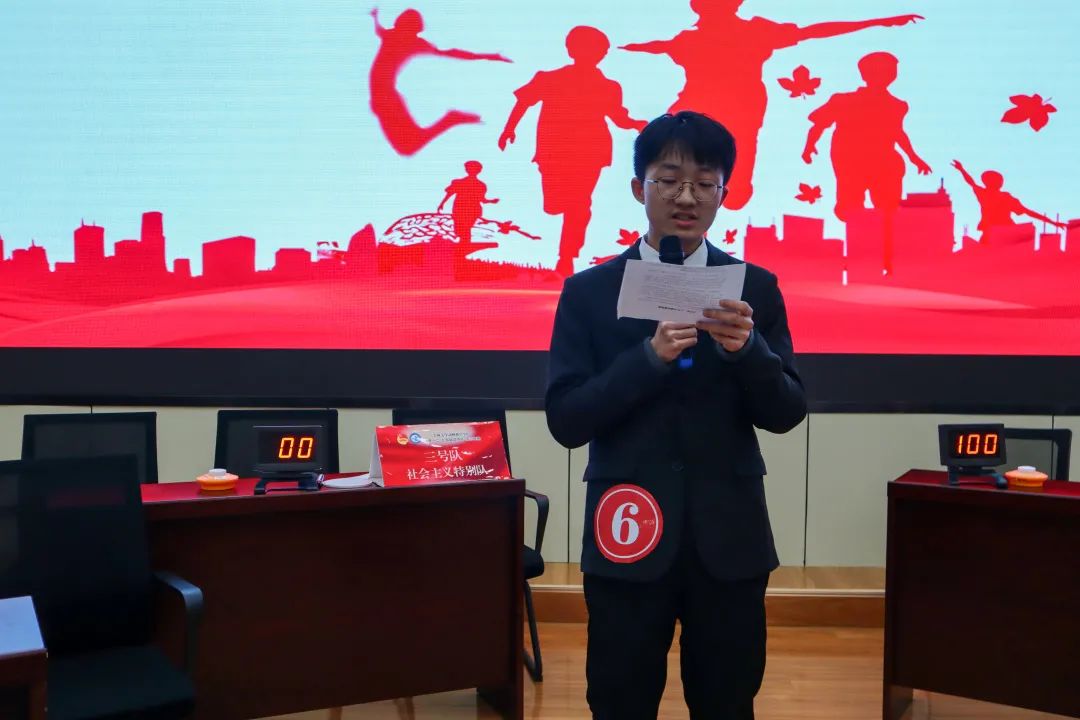 本次比赛共有来自6个团支部推荐的6名选手参加。在演讲比赛过程中,每位选手都为讲好“一二·九”抗日救亡运动的故事准备了丰富的演讲素材,以响亮且自信的声音点燃爱国激情,以“天下兴亡 匹夫有责”的慷慨激昂,感染在场的每一个人。