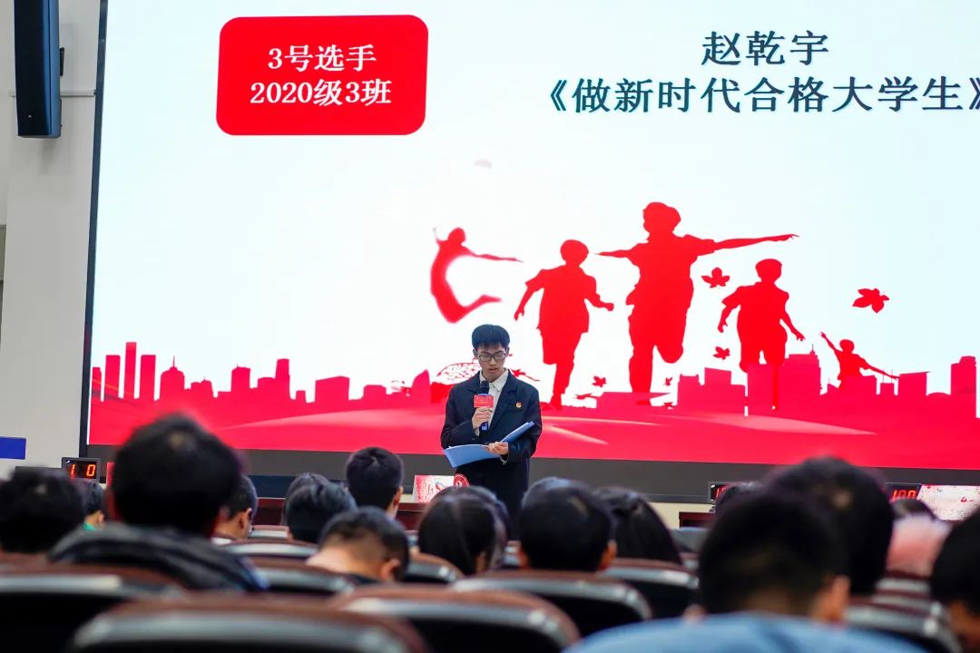 2020级动物科学专业三班团支部的赵乾宇同学以《做新时代合格大学生》为题发表演讲,号召广大同学要珍惜在校同学,勤奋刻苦学习,勇敢追逐梦想。