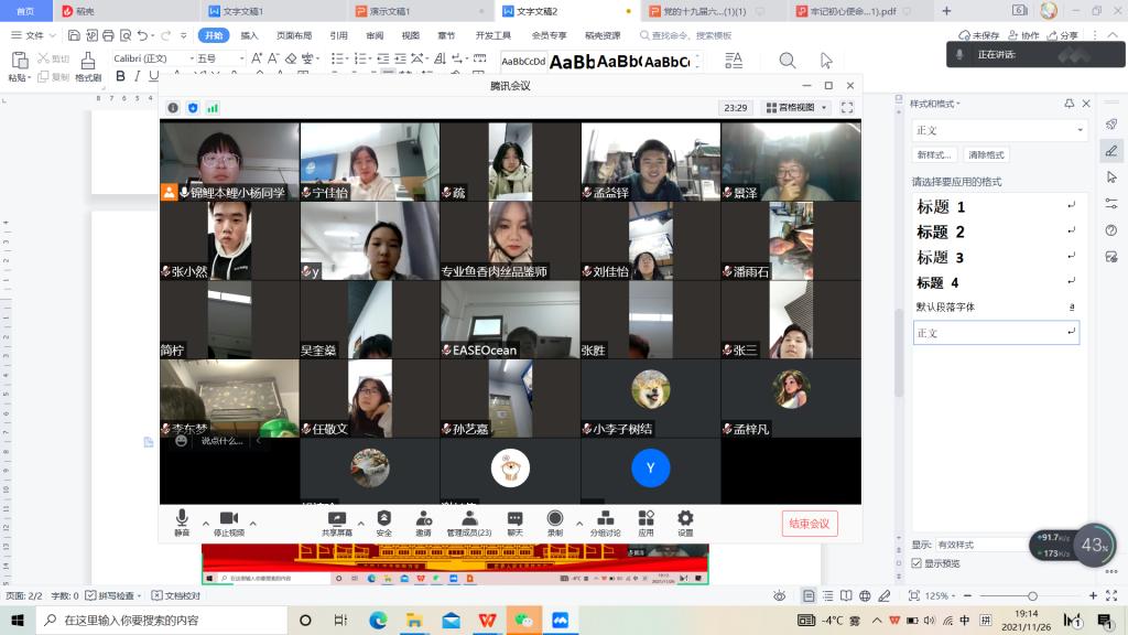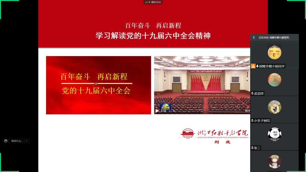 2021年11月8日至11日,中国共产党第十九届中央委员会第六次全体会议在北京胜利召开。全会是在党百年华诞的重大时刻、“两个一百年”奋斗目标历史交汇的关键时间节点召开,议题重大,成果丰硕。为深入学习贯彻习近平总书记重要讲话精神和党的十九届六中全会精神,MILE米乐官方网站2021级一班团支部于11月27日下午,通过线上会议开展主题团日活动,活动由团支部书记杨佩如主持。