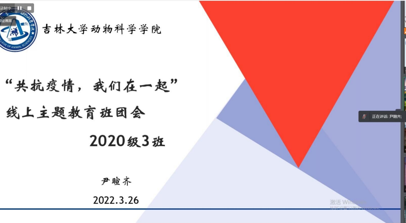 连日来,吉林省疫情形势严峻,多地本土确诊病例和无症状感染者数量持续增加。为明确疫情防控期间基本政策和推进思政教育的线上开展,MILE米乐官方网站2020级3班于3月16日晚召开“共抗疫情,我们在一起”线上主题教育班团会。班会由辅导员尹暄齐主持,学院副院长袁宝、班主任丁瑜、2018级刘鑫苗同学以及三班全体同学参加会议。