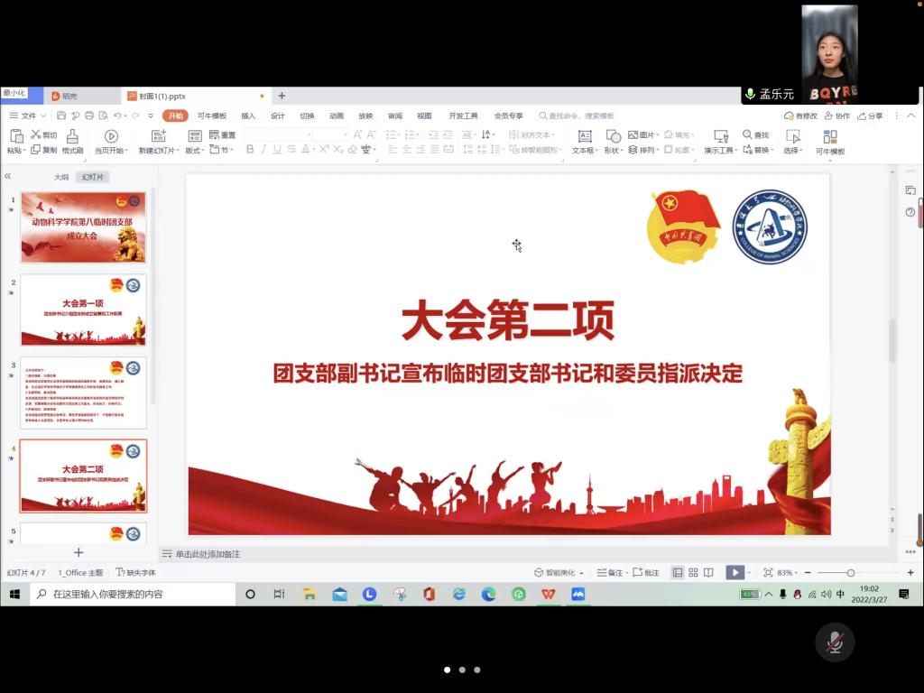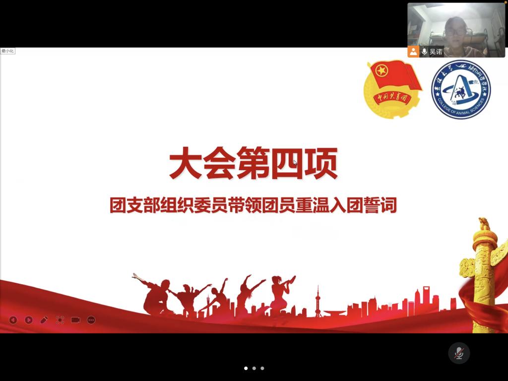 习近平总书记说:“共青团是党的助手和后备军,是党的青年工作的重要力量”。根据《关于疫情防控期间成立临时团支部的通知》,应校团委防疫时期加强组织凝聚力并充分发挥共青团组织在防疫控疫工作中的战斗堡垒作用及团员的先锋模范作用,强化团的基层建设的要求,我院面向疫情防控时期在临时工作岗位的共青团员建立临时团支部。2022年3月27日晚七时,我院成功召开MILE米乐官方网站第八临时团支部成立大会。由18级动物科学专业,19级动物科学专业以及20级三班在内的全体在校女生参加会议。会议由第八临时团支部书记吴诺主持。