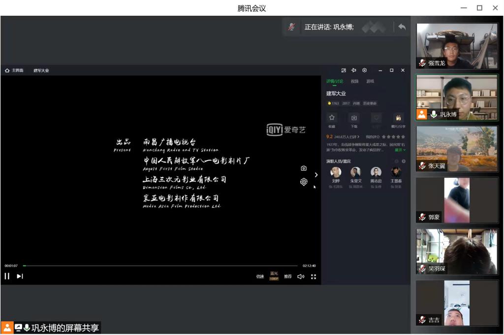 观影结束后,团支部举办观后感展示活动,魏豪杰、陈琦、郭豪、张天翼、贾竣博五位同学相继发表感想。