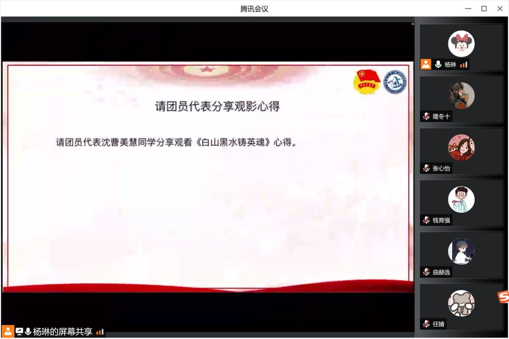 为了丰富团员们的日常封寝生活,弘扬伟大抗战精神,传承红色基因,MILE米乐官方网站第九临时临时团支部组织开展了优秀影视作品观影活动,并在4月12日晚8点,在线上开展了观后感展示活动。本次观后感展示活动由杨琳同学主持,MILE米乐官方网站第九临时团支部全体团员参与。