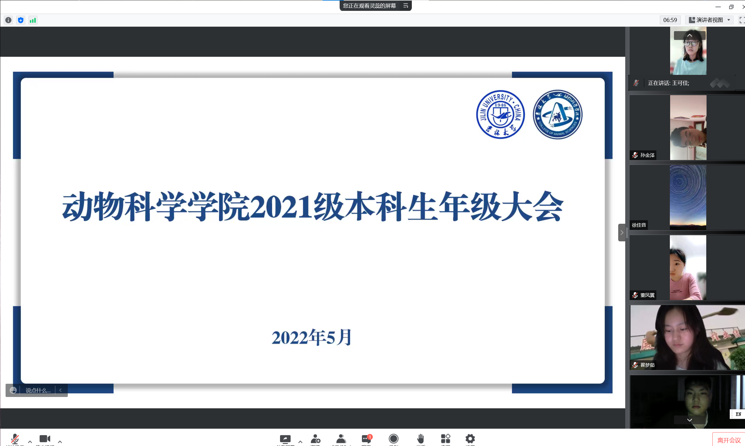 最后,王可佳给同学提出三点建议和希望:一是养成良好学习习惯,居家学习期间调整好学业安排与其他事务的关系,坚持学习第一的原则;二是当前阶段为线上教学阶段,做好个人学习进度调整,提高学习效率,从容应对期末考试;三是提醒大家时间紧、任务重,大一学年转瞬即逝,务必及时做好个人职业生涯规划。