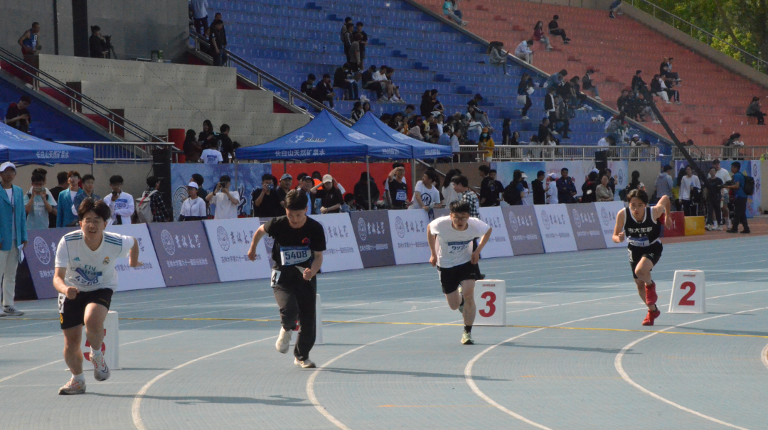 比赛场上,预备,砰!伴随着发令枪响,整个赛场顿时沸腾起来,加油助威声此起彼伏,络绎不绝。田径赛场上的运动员,一个个如矫兔般飞离起点,伴随着观众席上的加油助威,像利箭般冲向终点。