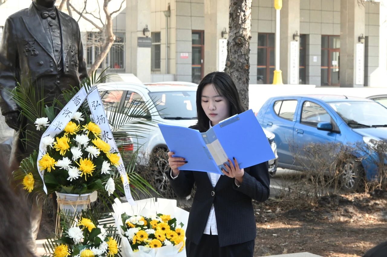 紧接着,2022级动物科学专业本科生张敬宜发言,表达了对先辈的无限怀念和继承前辈精神矢志前行的决心。她代表全体同学做出表率和承诺,定将以三位先贤为榜样,不忘吾辈青年的初心使命,扎实学好科学文化知识,将个人理想与国家所需、时代所需相结合,立志做有理想、敢担当、能吃苦、肯奋斗的新时代好青年,让青春在全面建设社会主义现代化国家的火热实践中绽放绚丽之花。