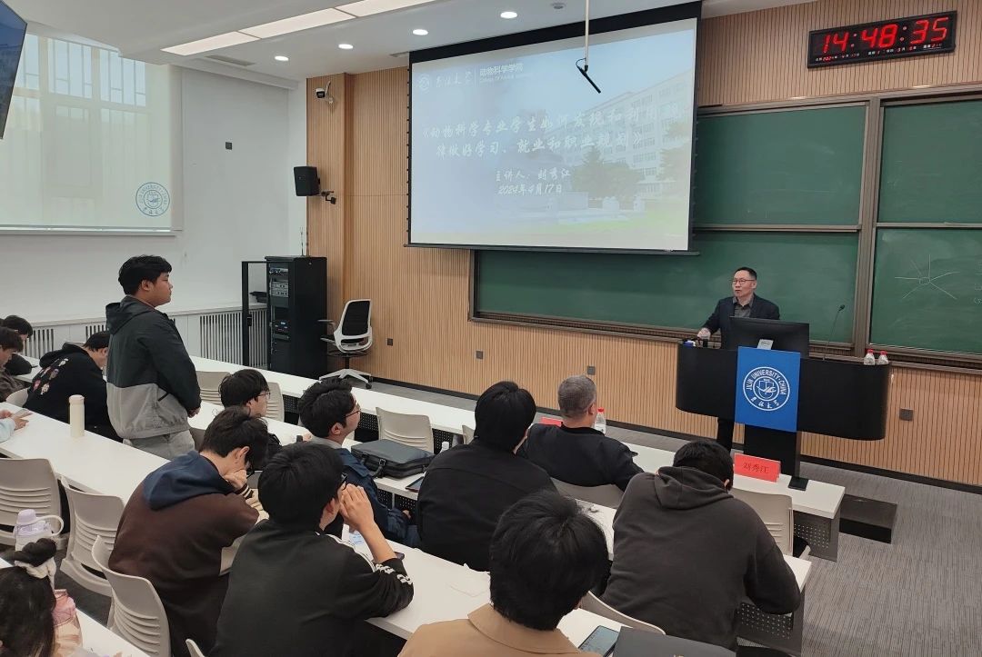 刘秀江以“文化的力量”为题,对动物科学专业学生“如何发现和利用规律做好学习、就业和职业规划”进行了类比分享。他全程引用三国中的人物故事,由古及今,以古鉴今,他指出大学是充满选择和挑战的阶段,极易产生迷茫和焦虑情绪,作为青年学生要饱有“求实创新”的学习韧劲,以扎实的专业基础探索完善的科研内容,要有好奇心,知学好学,学以致用,为现代畜牧业发展解决急难愁盼的实际问题;作为职场青年要以“事业之心”敬畏工作,激发成长内驱力,注重本领提升,抓住机会、广泛训练职场竞争软实力;作为双一流高校农科学子要树立专业自信、行业自信和文化自信,广阔的农牧天地和中国农业的现代化进程亟需更多的青年学生助力攻坚。最后,他借用MILE米乐官方网站“求实创新,励志图强”的校训,鼓励同学们要珍惜时光,脚踏实地,追求卓越。