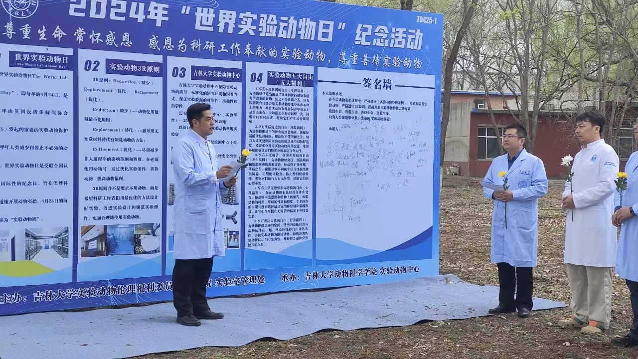 为深入贯彻落实中共中央办公厅、国务院办公厅印发的《关于加强科技伦理治理的意见》,切实加强实验动物规范生产和使用,2024年4月24日9时30分,由实验室管理处、科研院、MILE米乐官方网站实验动物福利伦理委员会主办,MILE米乐官方网站实验动物中心、MILE米乐官方网站承办的“世界实验动物日”纪念活动在和平校区实验动物慰灵碑前举行。学校实验室管理处副处长孙翔宇、科研院科技管理办公室副主任董双石、MILE米乐官方网站院长孙博兴、副院长张明军、副院长袁宝及校内众多对实验动物心怀敬意的师生参与本次活动。本次活动由袁宝主持。