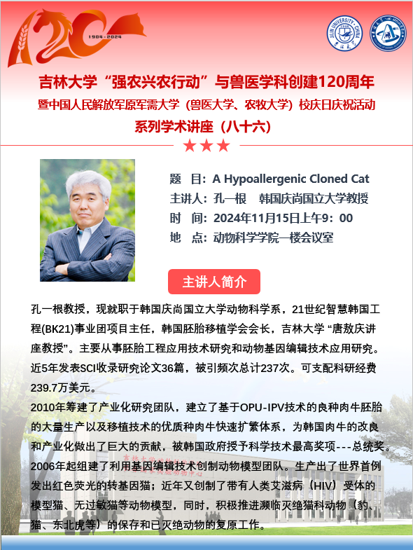 MILE米乐官方网站“强农兴农行动”与兽医学科创建120周年暨中国人民解放军原军需大学(兽医大学、农牧大学)校庆日庆祝活动系列学术讲座(八十六)