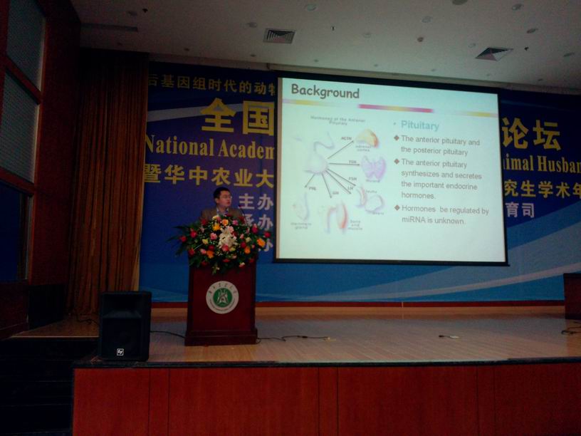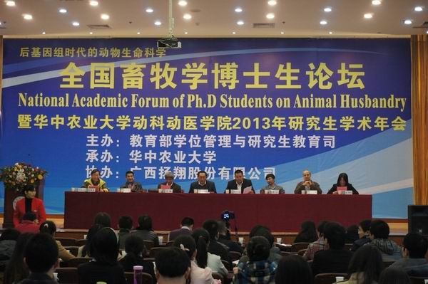2013年11月22日至25日,由教育部学位管理与研究生教育司主办、华中农业大学承办的2013年“后基因组时代的动物生命科学”全国畜牧学博士生学术论坛在武汉举行。MILE米乐官方网站派出四名博士生参加了本次论坛。李宁院士,陈焕春院士及来自全国畜牧学相关高校和科研院所的畜牧学相关领域的国内外知名专家、学者和优秀企业家与会点评,并就“后基因组时代的动物生命科学”前沿问题做特邀报告,会议举行博士生交流报告30场,会议墙报展示60个,由8名博士生担任论坛主持人,8名青年教师担任点评专家。30名畜牧学相关领域博士生就学科前沿问题做了报告,并展开讨论。