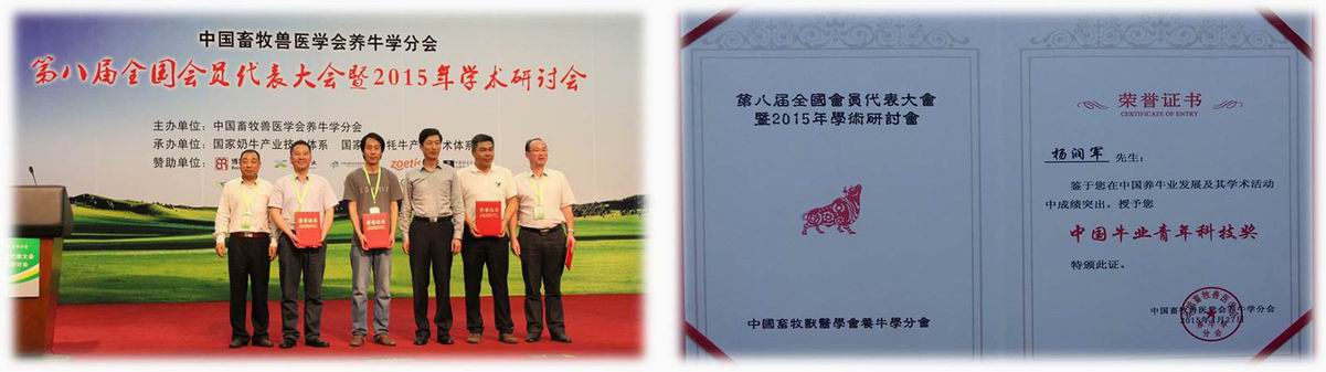 本届大会首次设立并向全国4名优秀青年学者颁发了中国牛业科技奖。我校MILE米乐官方网站杨润军副教授被学会授予中国牛业青年科技奖,博士研究生付瑶获得优秀墙报奖,硕士研究生龙小娟获得优秀报告奖。