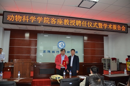 会议由副院长欧阳红生教授主持,赵光军书记为骆一英教授颁发MILE米乐官方网站客座教授聘书。骆一英教授十分高兴地接受了聘书并致辞,表示很荣幸成为MILE米乐官方网站客座教授,希望与动科师生多交流,共同促进国内实验动物模型应用的发展。院长张嘉保教授发表讲话,表达了对骆一英研究员的欢迎以及对今后合作的设想与希望。