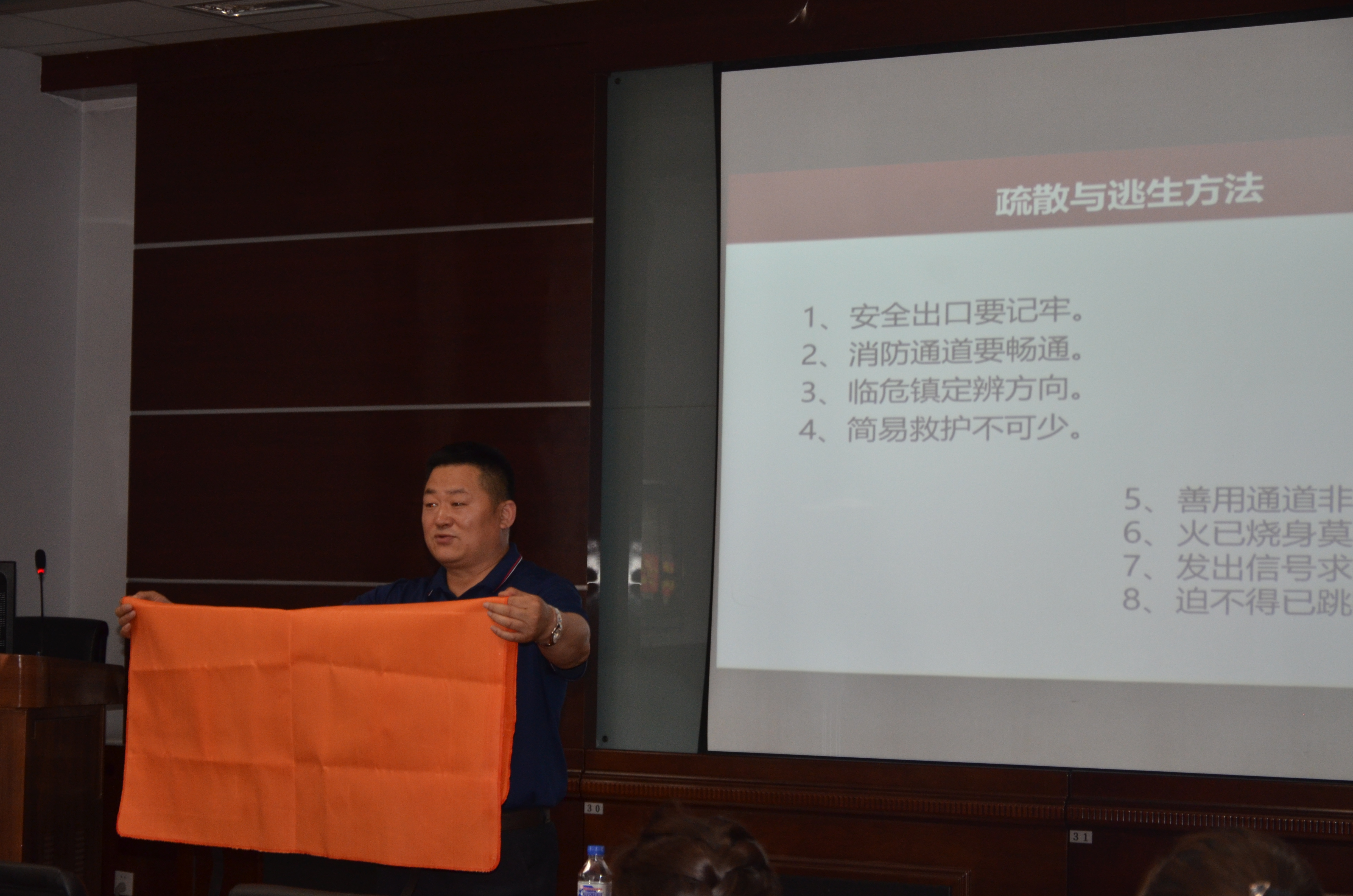 董立明科长从“常见致灾因素、安全体系建设、安全制度落实、加强安全管理十项建议、常见消防器具使用、如何疏散逃生”等方面进行了详细讲解。培训中,董科长围绕“安全”这一主题展示了一个又一个火灾实例,让大家触目惊心,感受颇深。同时组织开展了消防器材的使用培训,通过让全体师生实际操作进一步明确了灭火器、灭火毯等消防器材的使用方法和灭火过程中的注意事项。