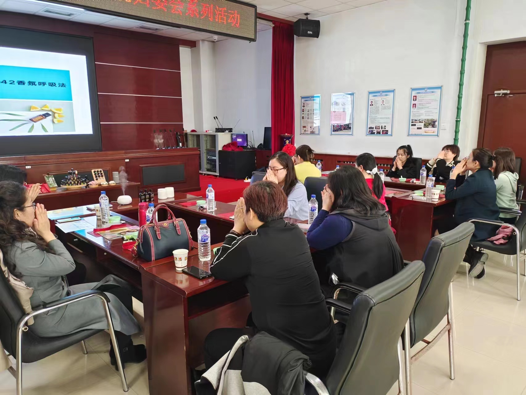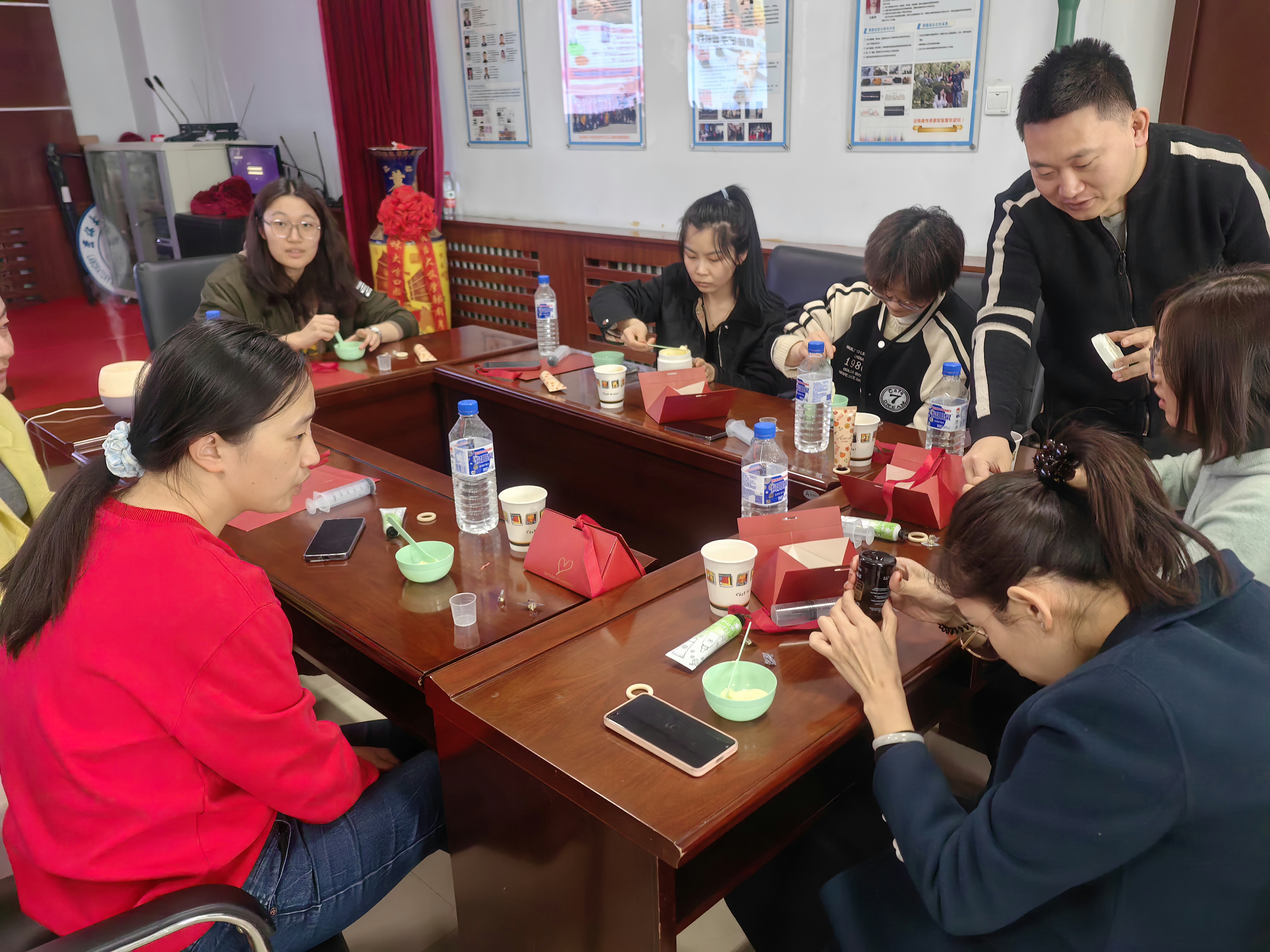 随后,在芳疗师的讲解和带领下,在场的女教职工共同学习了精油与女性健康的相关知识,并通过嗅吸、涂抹、按摩等方式,亲身体验精油疗愈身心、缓解情绪的神奇功效。为进一步感受精油的魅力,在芳疗师的指导下参会人员纷纷拿起工具,参与到了精油护手霜的制作中来,经过基础底霜的配备、搅拌、精油融合和分装等步骤,在大家的相互配合下,一支支精油护手霜呈现在眼前。