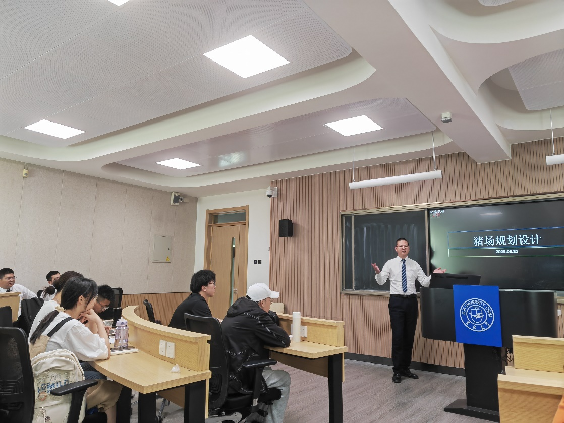 课堂中三位工程师以丰富的一线实践经验,深入浅出的讲授了牧原集团猪场选址布局、环境控制、智能化产品及技术应用等相关内容,通过先进案例的讲述、现场互动交流,同学们深受启发,反响热烈,对现代化生猪养殖有了更形象、更深入的了解,对快速发展的智慧牧业产生了浓厚的兴趣。