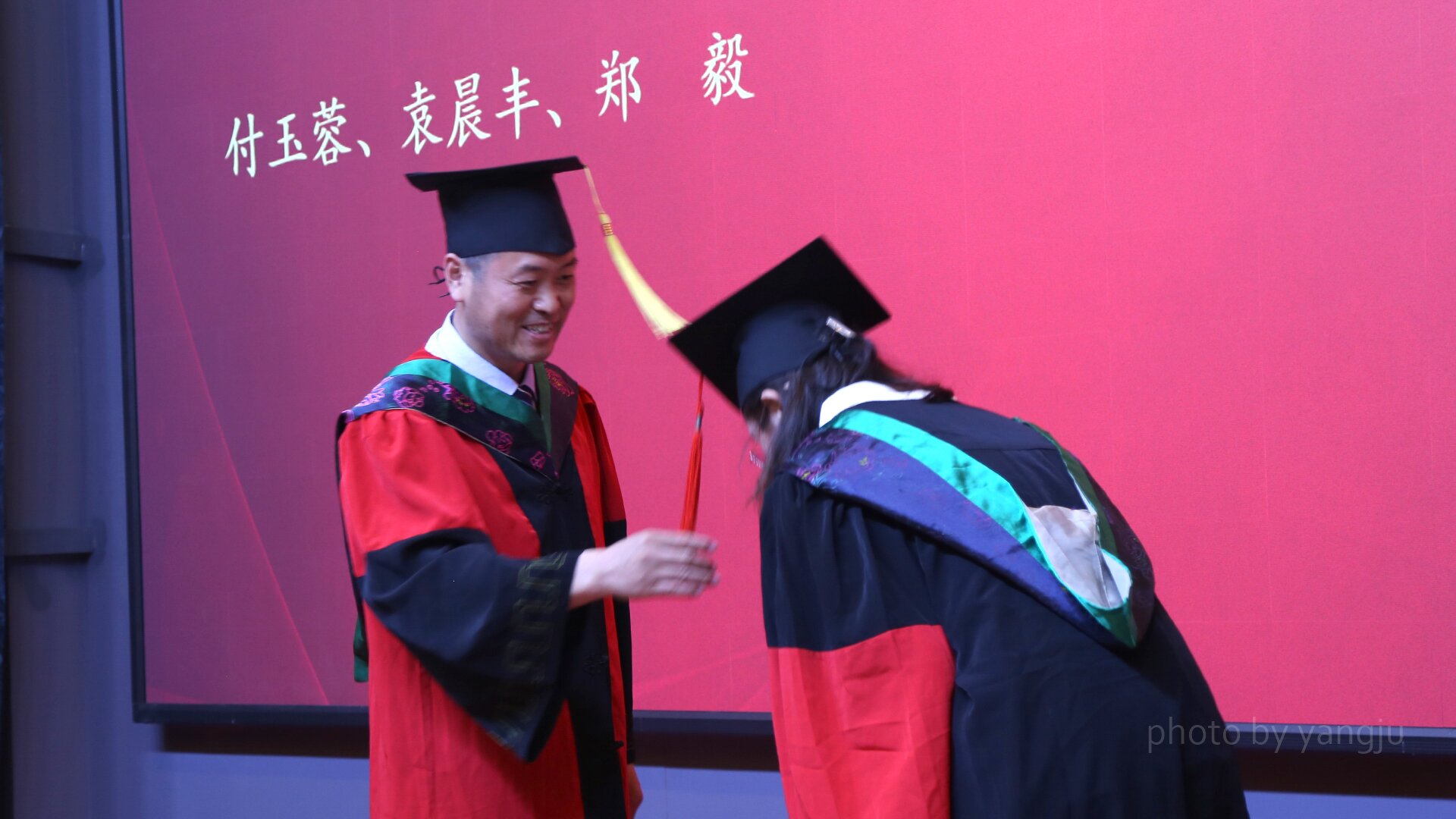 学科学位评定分委会主席张明军教授宣读《关于授予2023届博士学位、硕士学位和学士学位的决定》。院长孙博兴教授,动物科学系周虚教授、沈景林教授,实验动物系任文陟教授,生物技术系李占军教授主礼全体毕业生学位授予。