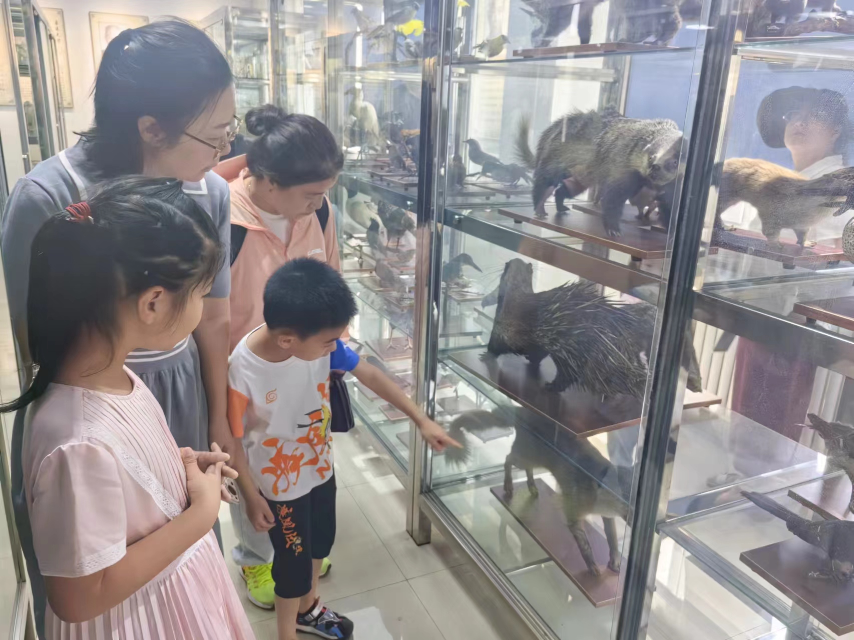 讲解环节结束后,小朋友们在家长的陪伴下自由参观国家级动物科技实验教学中心标本馆,参观动物展览和珍禽、鸟类标本。在老师和学生志愿者的带领下走进实验室,对动物组织样本进行了显微观察。