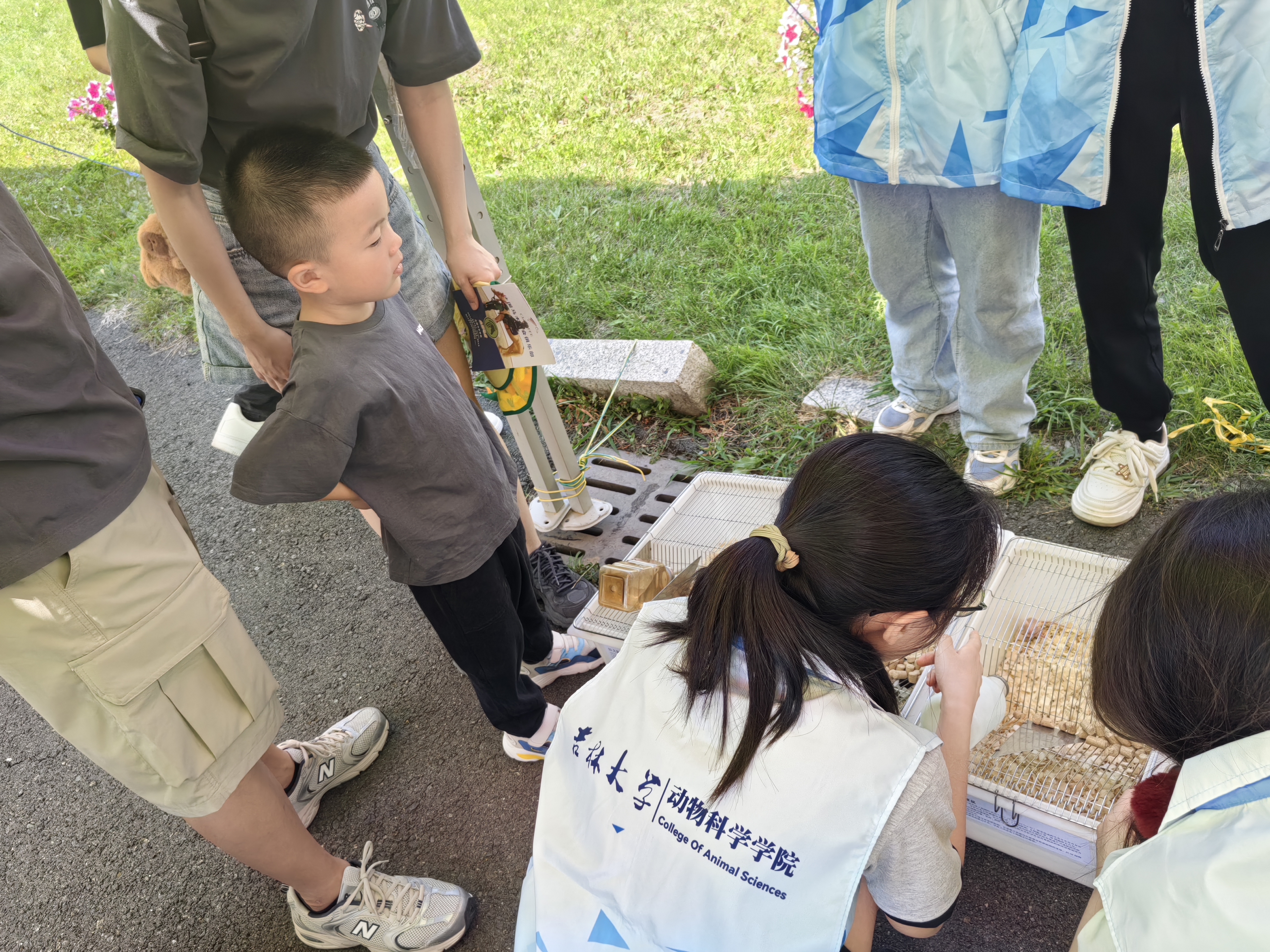 在体验互动环节,孩子们在骑手、教练保护下骑乘威尔士矮马、饲喂梅花鹿、绒山羊、中华柴犬;在学生志愿者陪伴讲解下近距离欣赏观察吉戎兔、向海飞鹅、蓝猫、军牧一号白猪、东辽黑猪;观察金黄地鼠、大鼠、小鼠、豚鼠等实验动物。孩子们充分感受到人与动物的亲密关系,学习如何尊重和保护动物,培养对生命的敬畏和爱心。