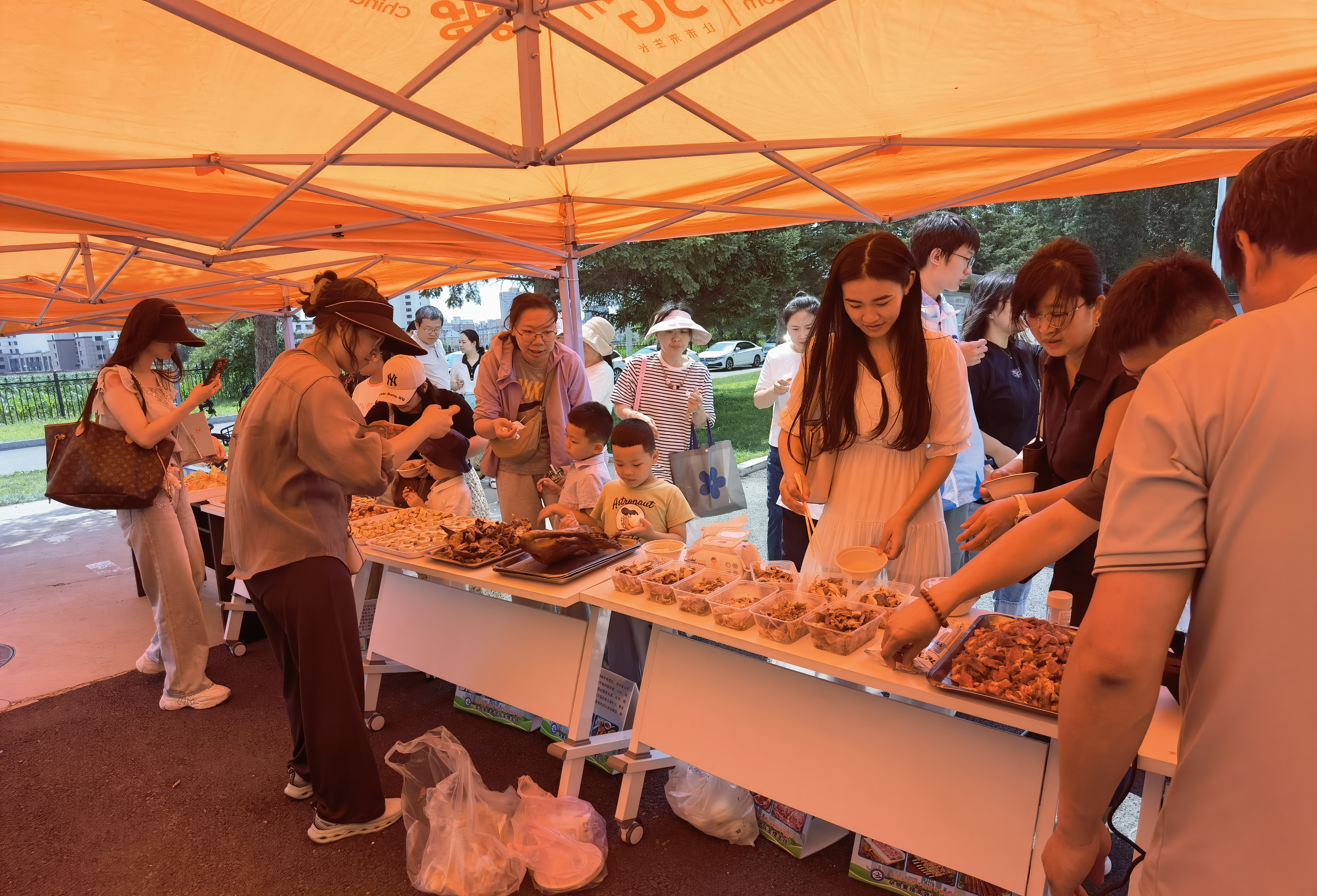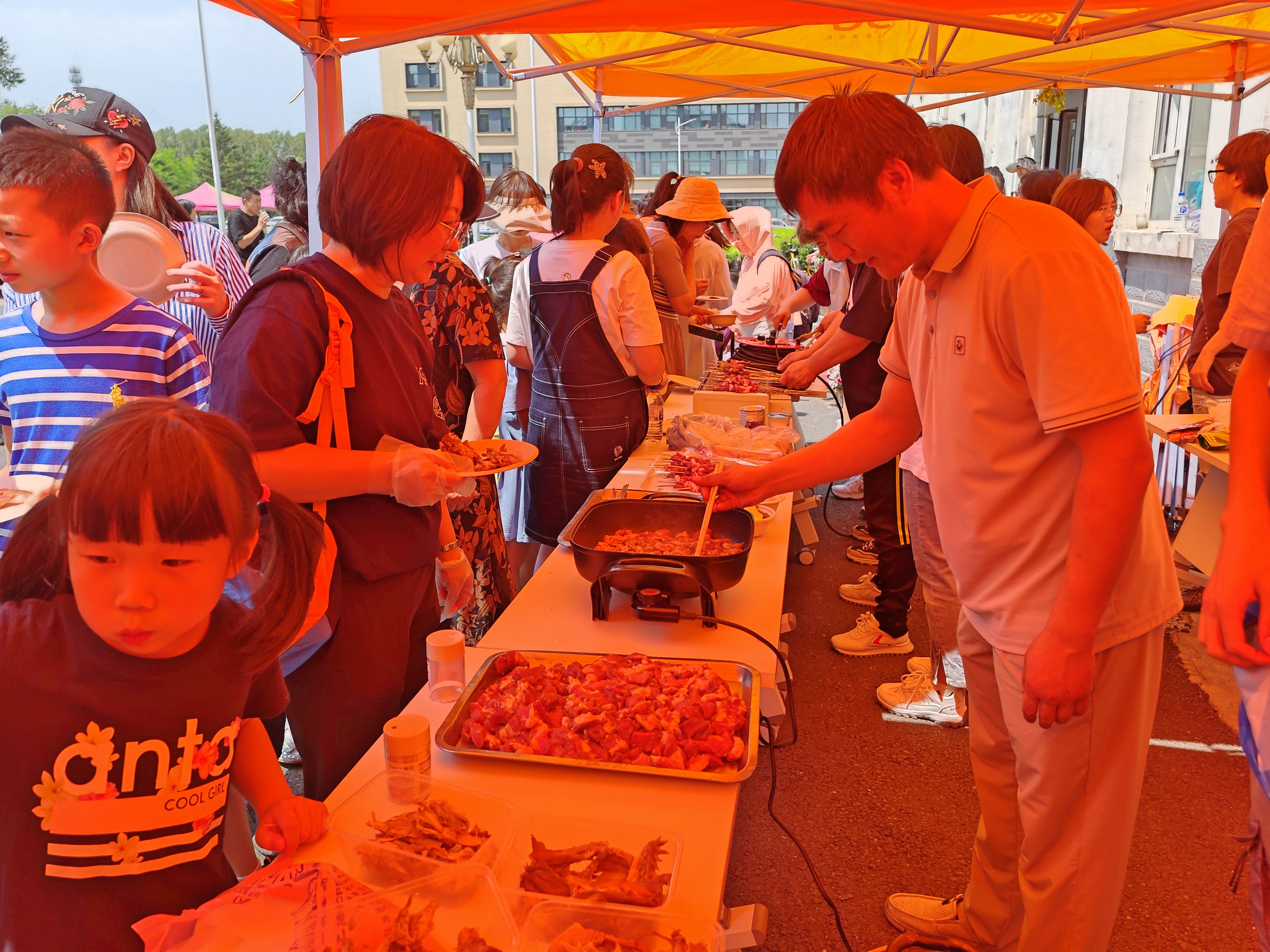 同时,学院精心准备了肉蛋奶等动物性食品,供大家品鉴,主要都是学院各科研团队的品种,东辽黑猪肉、长白山黑牛排、双乾肉羊串、熏飞鹅、熏兔、酸奶、鹅蛋、鸭蛋、鸡蛋等。家长和孩子们对各品种的肉蛋奶制品的品质口感风味赞不绝口,感受科研攻关对品种培育、肉品质改善,提高动物生产效能的效果。