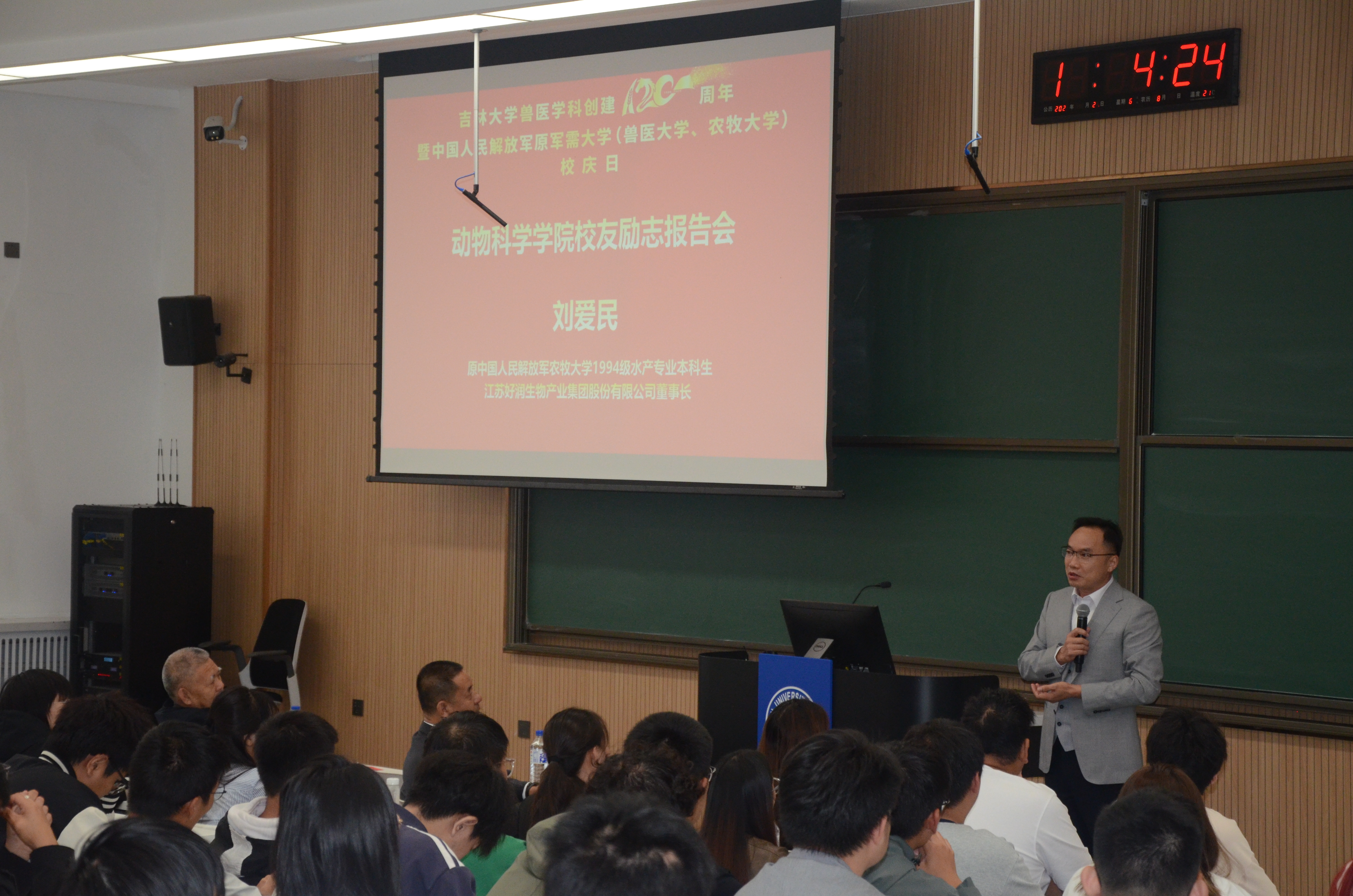 在MILE米乐官方网站兽医学科创立120周年暨原中国人民解放军军需大学(兽医大学、农牧大学)校庆之际,9月21日下午,MILE米乐官方网站在科学讲堂100教室举办校友励志报告会。MILE米乐官方网站党委书记高福和老师,中国人民解放军原农牧大学1994级水产专业刘爱民校友,中国人民解放军原农牧大学学员6队队长、植物科学学院原党委书记张晓楼老师参加报告会。会议由高福和书记主持。