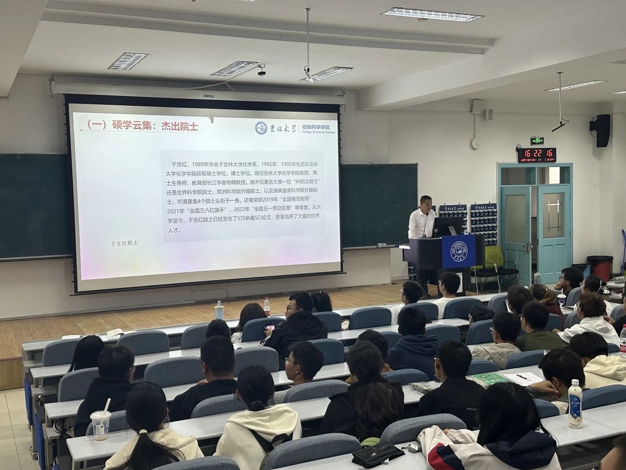 高福和书记以“赓续‘又红又专’吉大基因,做强国有我的新时代大学生”为题展开授课。他向同学们阐述了“又红又专”的精神内涵,其中特别强调黄大年精神和北上精神,激励学子们汲取精神养分,树立知农爱农、学农为农、强农兴农的坚定信念与崇高使命。