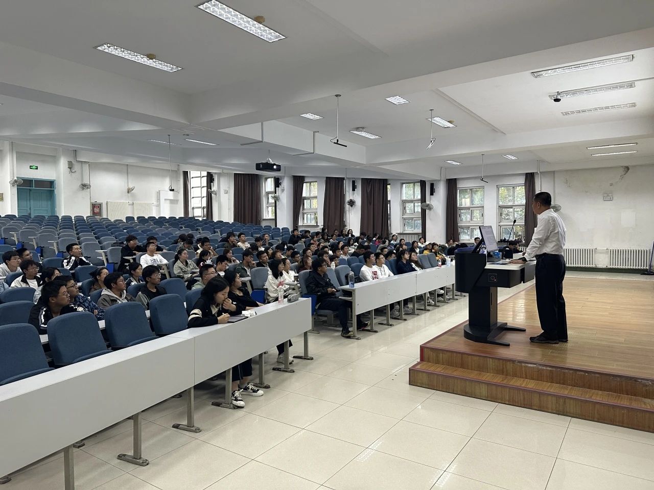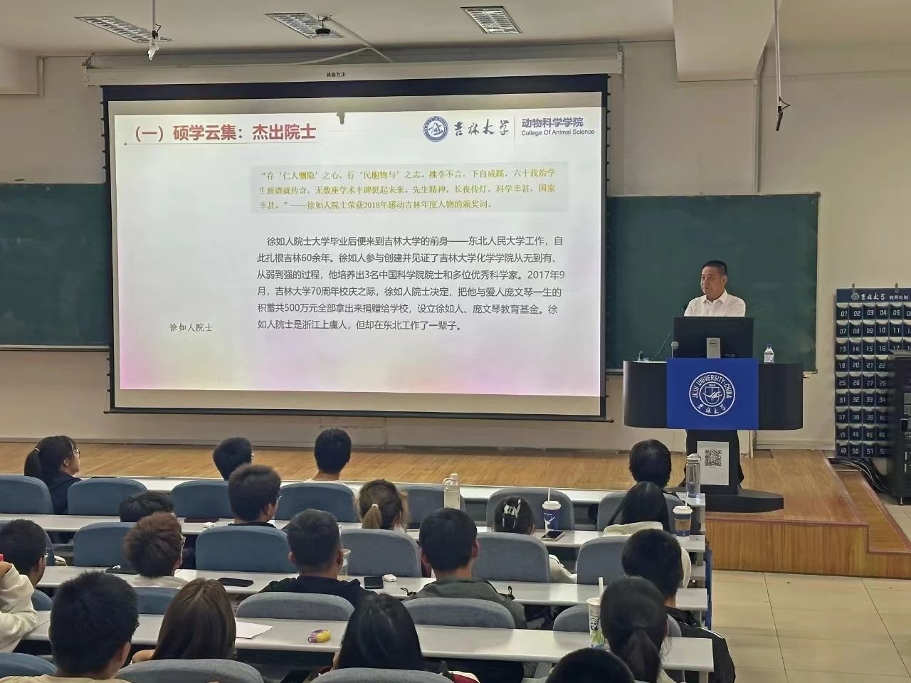 授课过程中,高福和书记深情回顾了黄大年教授的卓越贡献,作为吉大教师的杰出典范,他怀着对祖国的赤诚热爱,毅然舍弃国外优渥的条件,回归祖国投身科研事业,以忘我的工作态度日夜奋战在科研一线,带领团队在众多关键领域实现重大突破,成为国家科技进步的杰出贡献者。其事迹完美诠释了至诚报国的核心要义,成为当代青年学者的精神丰碑。高书记为同学们介绍在吉大各校区历史长河中涌现的众多杰出校友,他们秉承黄大年精神、北上精神及学校优良传统,在不同时期的科学领域发光发热。无论是科研攻坚的佼佼者,还是扎根基层的奋斗者,他们均以实际行动践行吉大精神,为新生树立奋斗标杆。