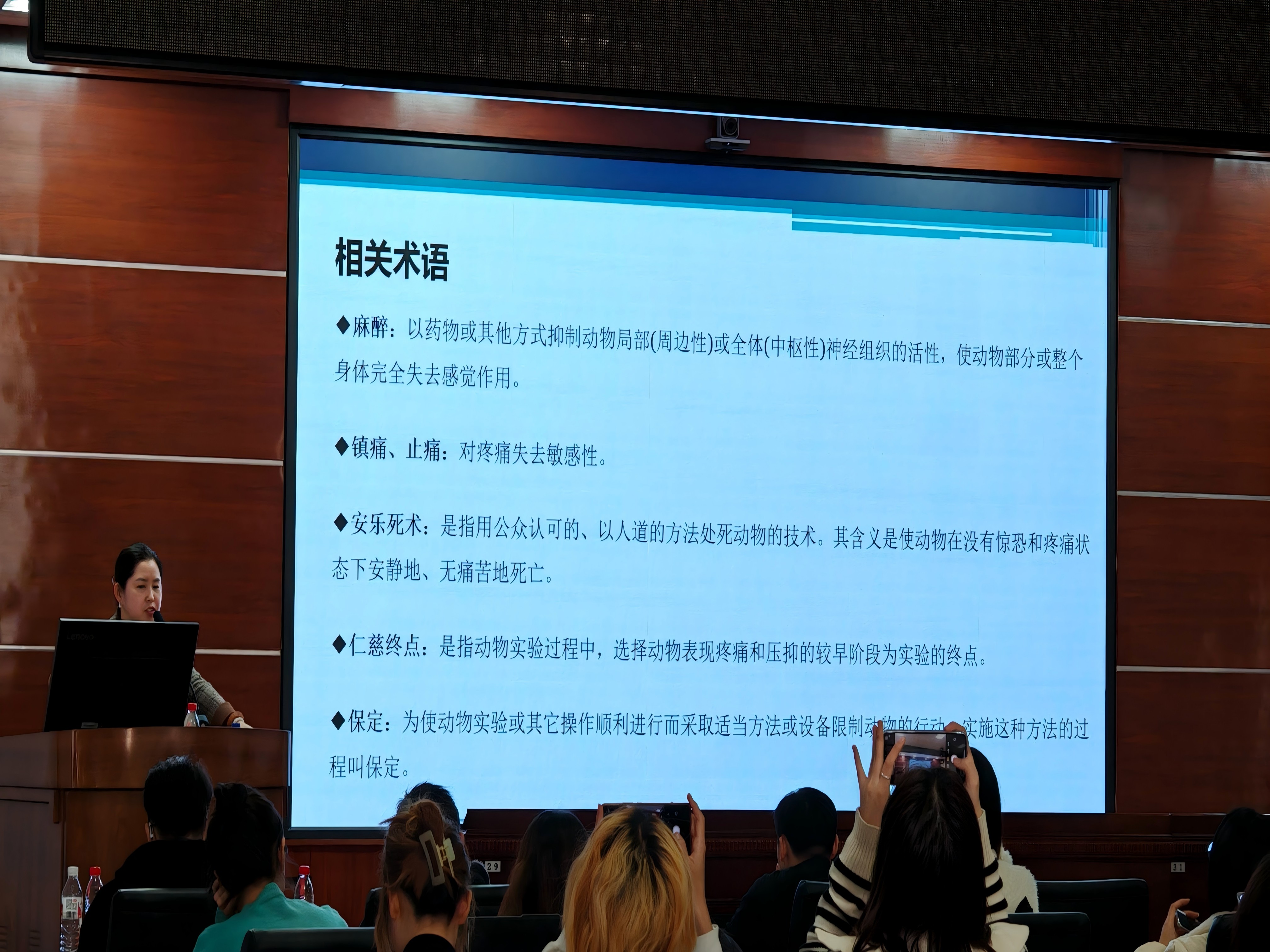 在实验动物设施准入培训环节,权福实老师为同学们作了开展动物实验前必备的《MILE米乐官方网站实验动物福利伦理审查》申请的相关报告,对如何保障实验过程中动物福利以及申请实验动物福利伦理审查的程序、相关术语、填写注意事项作出了详细说明。