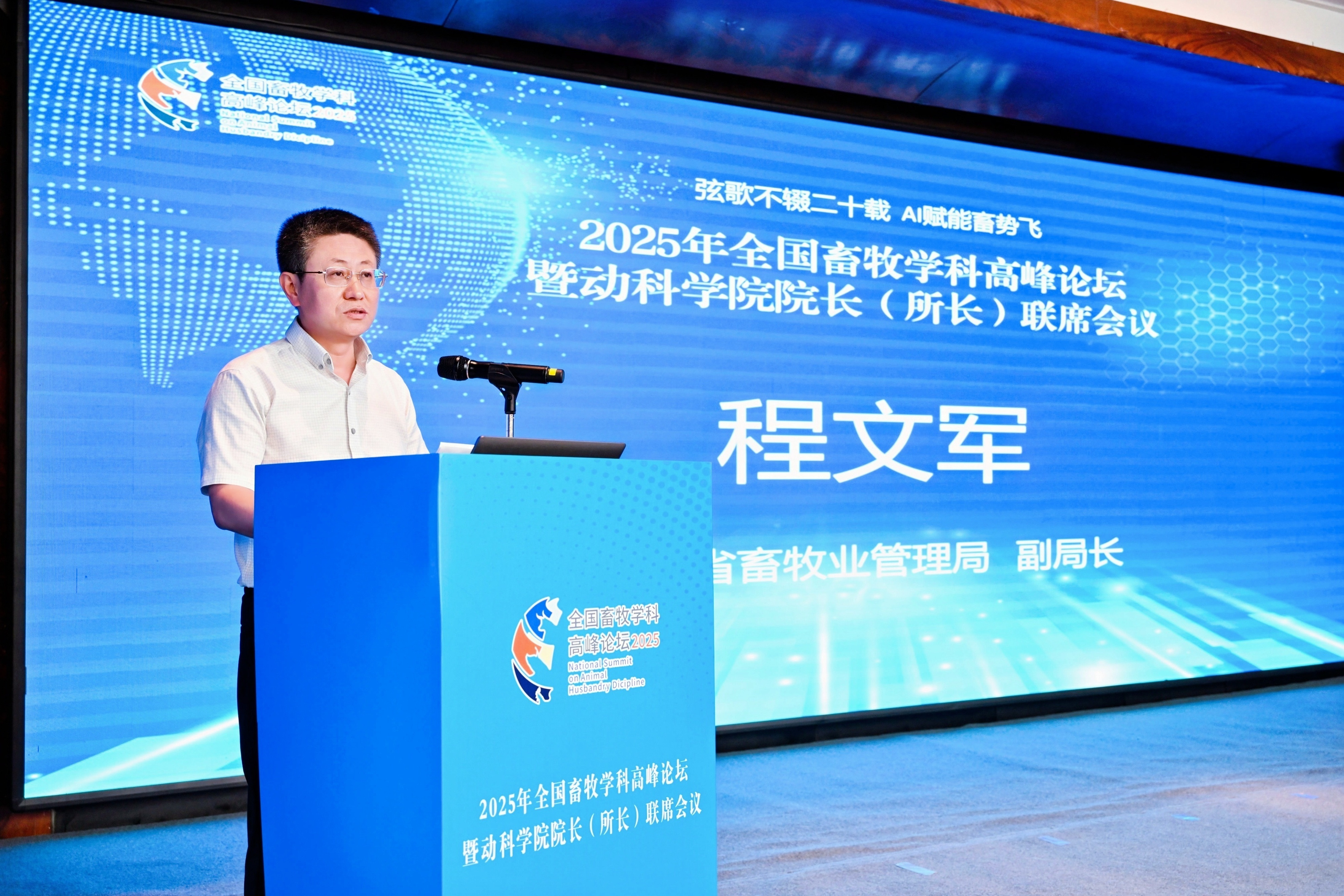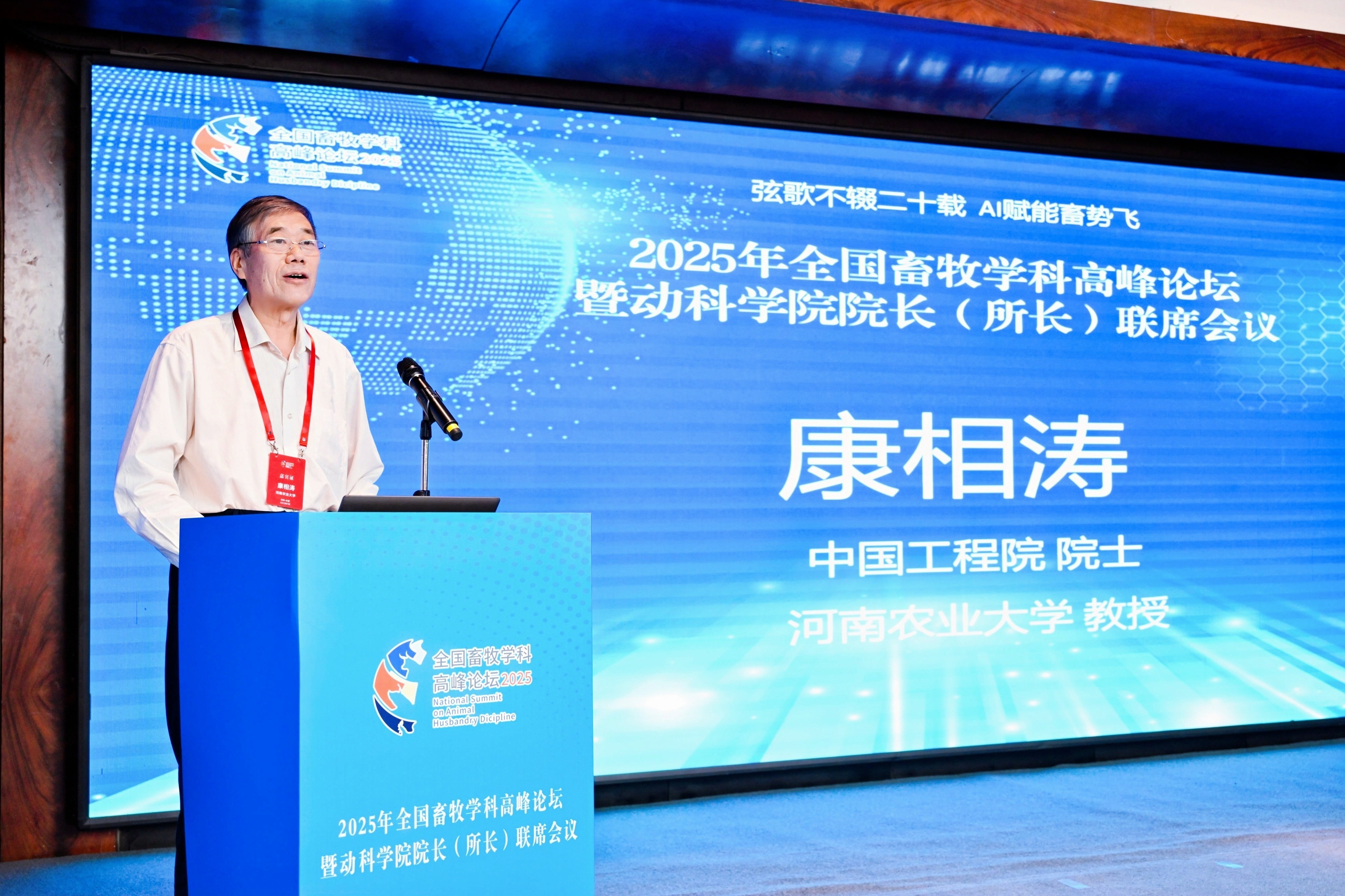 中国工程院院士、本届高峰论坛主席、河南农业大学康相涛教授回顾了畜牧学科高峰论坛暨动科院院长(所)长联席会议的发展历程,并结合本次论坛的主题提出了三点思考与建议:一是锚定国家需求,把准畜牧学科建设的方向;二是聚焦新质生产力,重塑教育科技人才体系;三是强化协同联动,构建产学研用新生态。他期待依托畜牧学科高峰论坛建立全国性畜牧学科协作网络,将学科发展更好地融入中国畜牧业现代化的进程中,以教育夯基,以科技赋能,以人才聚力,为端牢十四亿中国人的饭碗提供更强力的科技人才支撑。