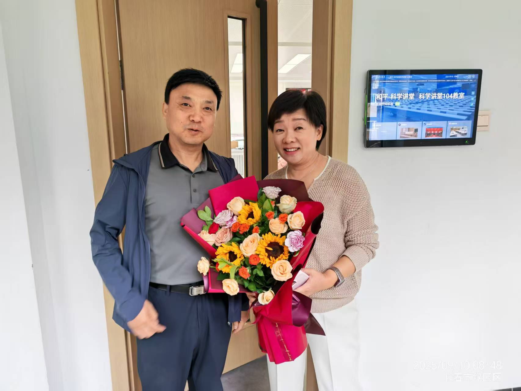 学院党委书记徐仁元、副院长袁宝、冷国永、李纯锦、逄大欣,党委副书记兼副院长、纪委书记肖建荣、分别来到和平校区科学讲堂和动物科技国家级示范实验教学中心楼等14间教室,向一线教师致以教师节的诚挚慰问和崇高敬意,感谢广大一线教师为学院学生培养作出的贡献,并送上鲜花和节日祝福。