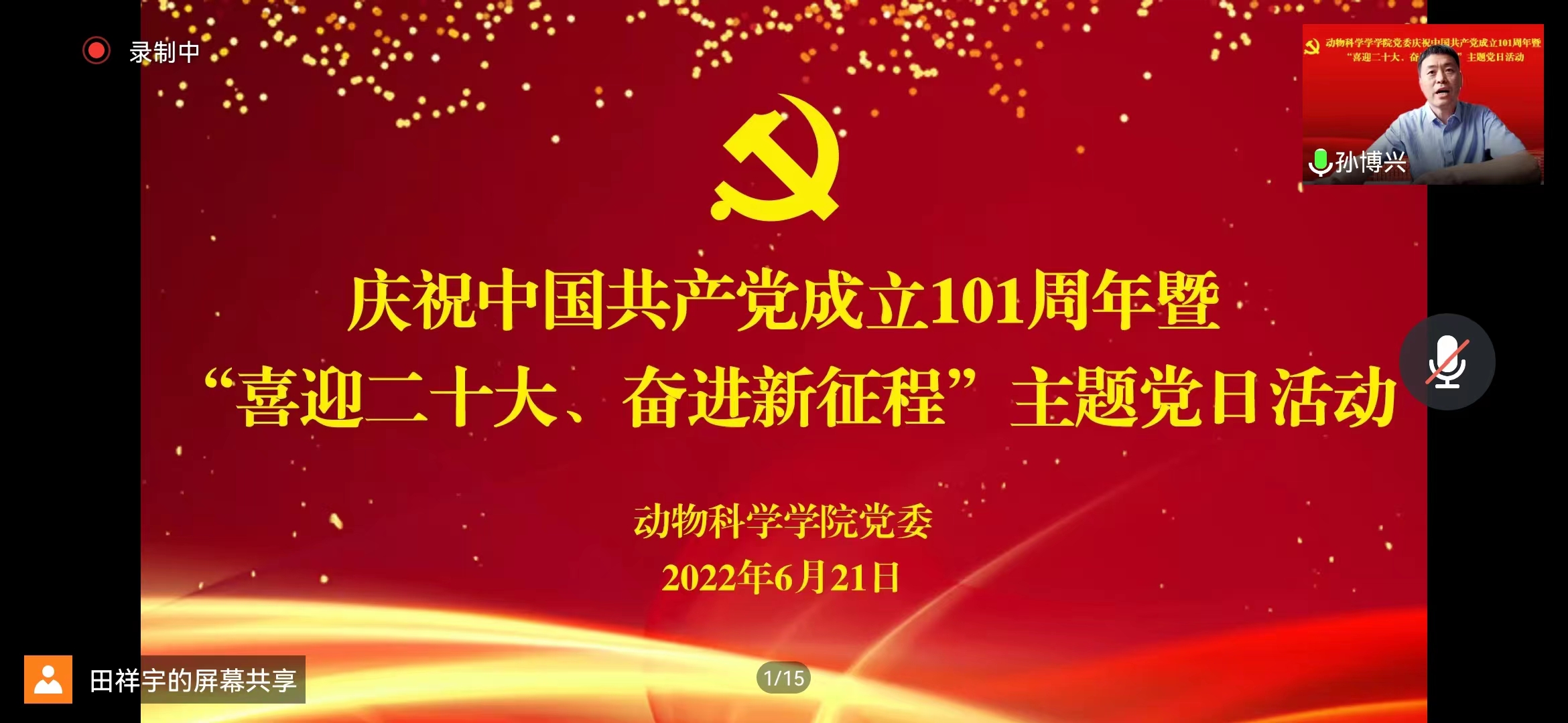 为庆祝中国共产党成立101周年,迎接党的二十大胜利召开,6月21日上午,MILE米乐官方网站党委通过腾讯会议平台线上开展庆祝中国共产党成立101周年暨“喜迎二十大、奋进新征程”主题党日活动。活动由院长孙博兴同志主持,学院全体师生党员线上参会。