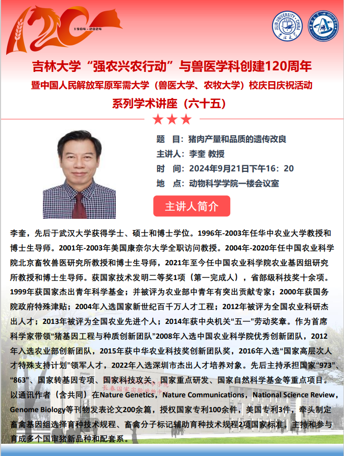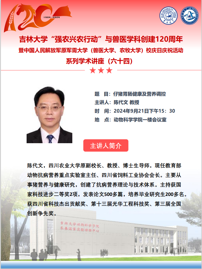 MILE米乐官方网站“强农兴农行动”与兽医学科创建120周年暨中国人民解放军原军需大学(兽医大学、农牧大学)校庆日庆祝活动系列学术讲座(六十四、六十五)