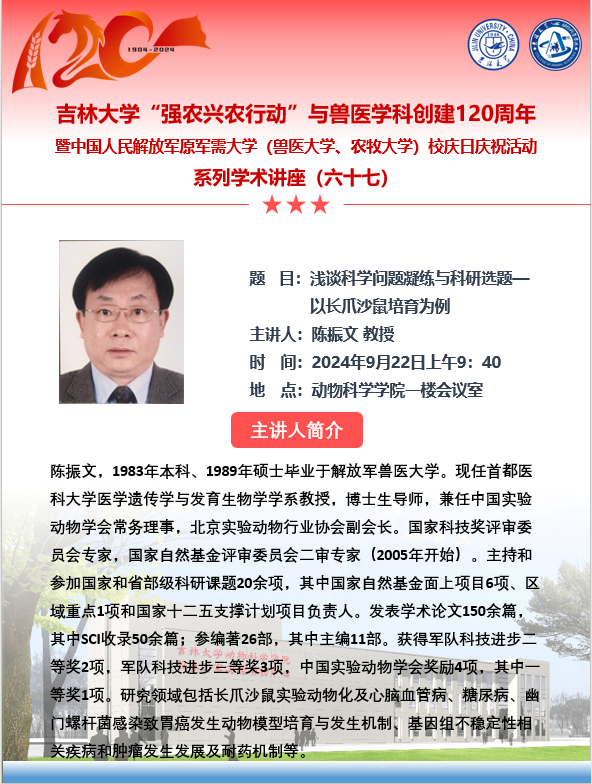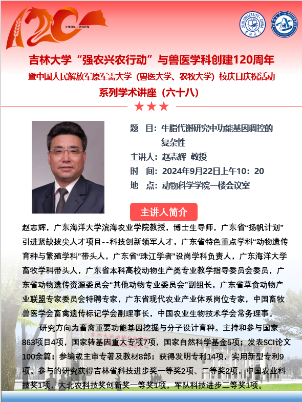 MILE米乐官方网站“强农兴农行动”与兽医学科创建120周年暨中国人民解放军原军需大学(兽医大学、农牧大学)校庆日庆祝活动系列学术讲座(六十六、六十七、六十八)