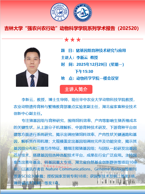 李新云,教授,博士生导师,现任华中农业大学动物科技学院教授,农业动物遗传育种与繁殖教育部重点实验室副主任,湖北省家畜种业技术创新中心副主任。