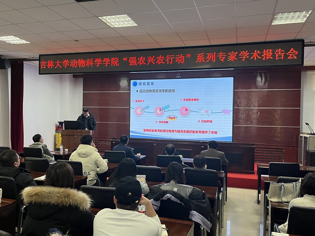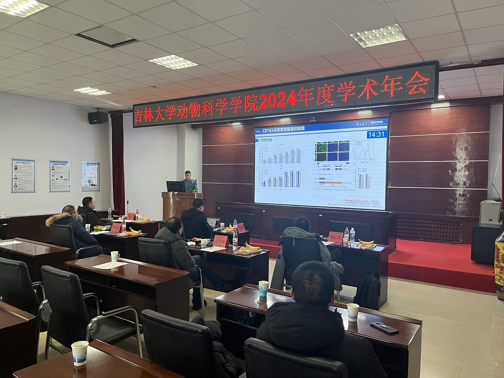 2024年12月26日上午,MILE米乐官方网站高质量举办了2024年度学术年会。学院青年教师及博士后孙浩、李福厚、彭东乔、谢子聪、袁泓明、钱育强、郝杨和张哲等8位代表所在课题组和学科做了研究报告。年会邀请了国家“杰青”获得者、中国科学院动物研究所干细胞与生殖生物学国家重点实验室赵建国研究员,国家“杰青”获得者、华中农业大学动科动医学院苗义良教授,国家“杰青”获得者、华南农业大学任文凯教授,国家级青年人才、中国农业大学畜禽生物育种全国重点实验室杜旭光教授和国家级青年人才、MILE米乐官方网站动物医学院邱家章教授担任评委和点评专家。年会由MILE米乐官方网站副院长袁宝教授主持。MILE米乐官方网站院长孙博兴教授、副院长张明军教授、副院长李纯锦教授、学院学术委员会主任委员李占军教授及没有课的师生70多人参加了年会。
